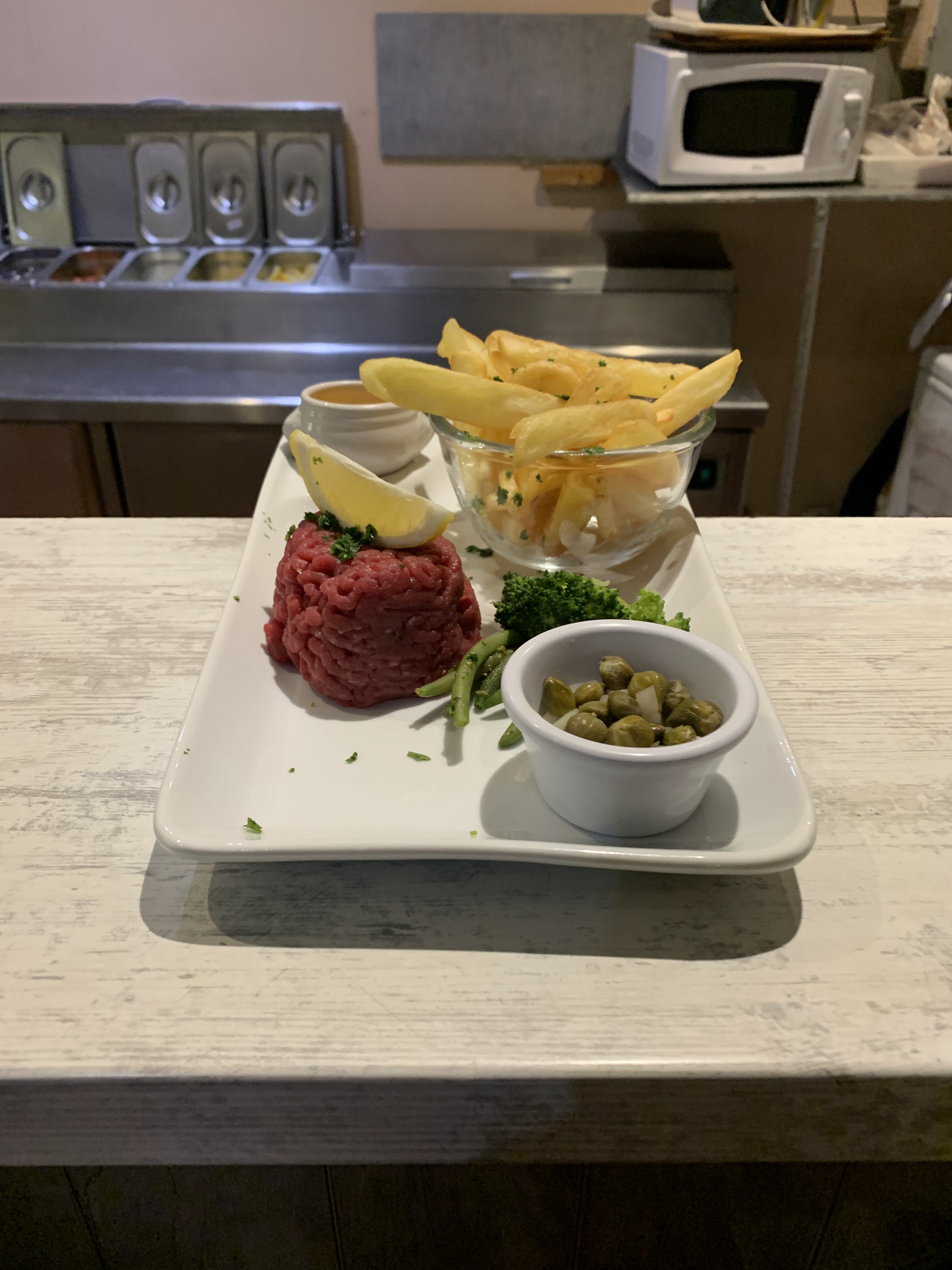 Un tartare juste au top! Tout était bien, de l humour au service. Bref, nous avons passé un très bon moment. Très bon rapport qualité prix. Je recommande vivement. Ouvert le dimanche!!!