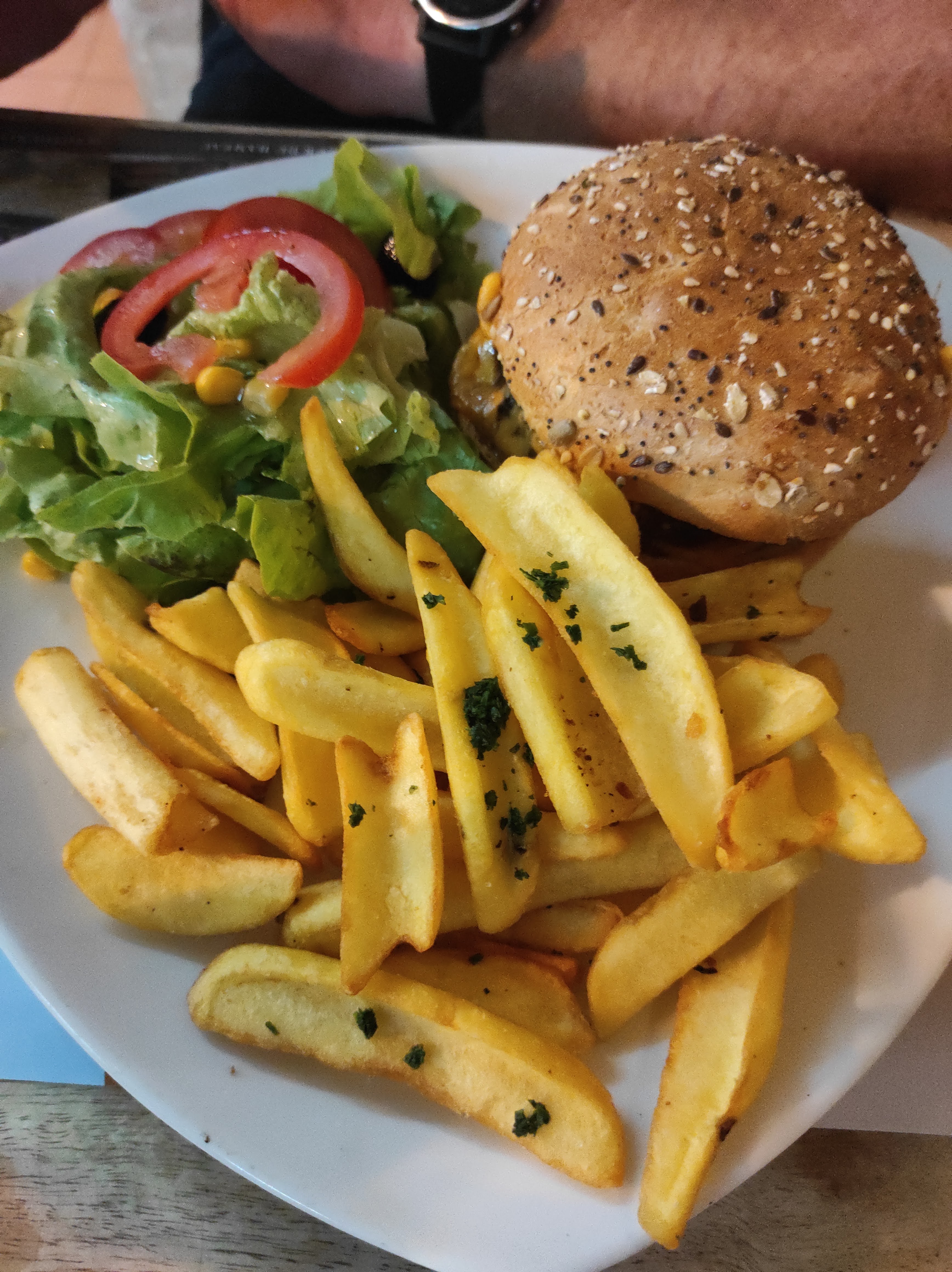 Burger super bon et tiramisu excellent.