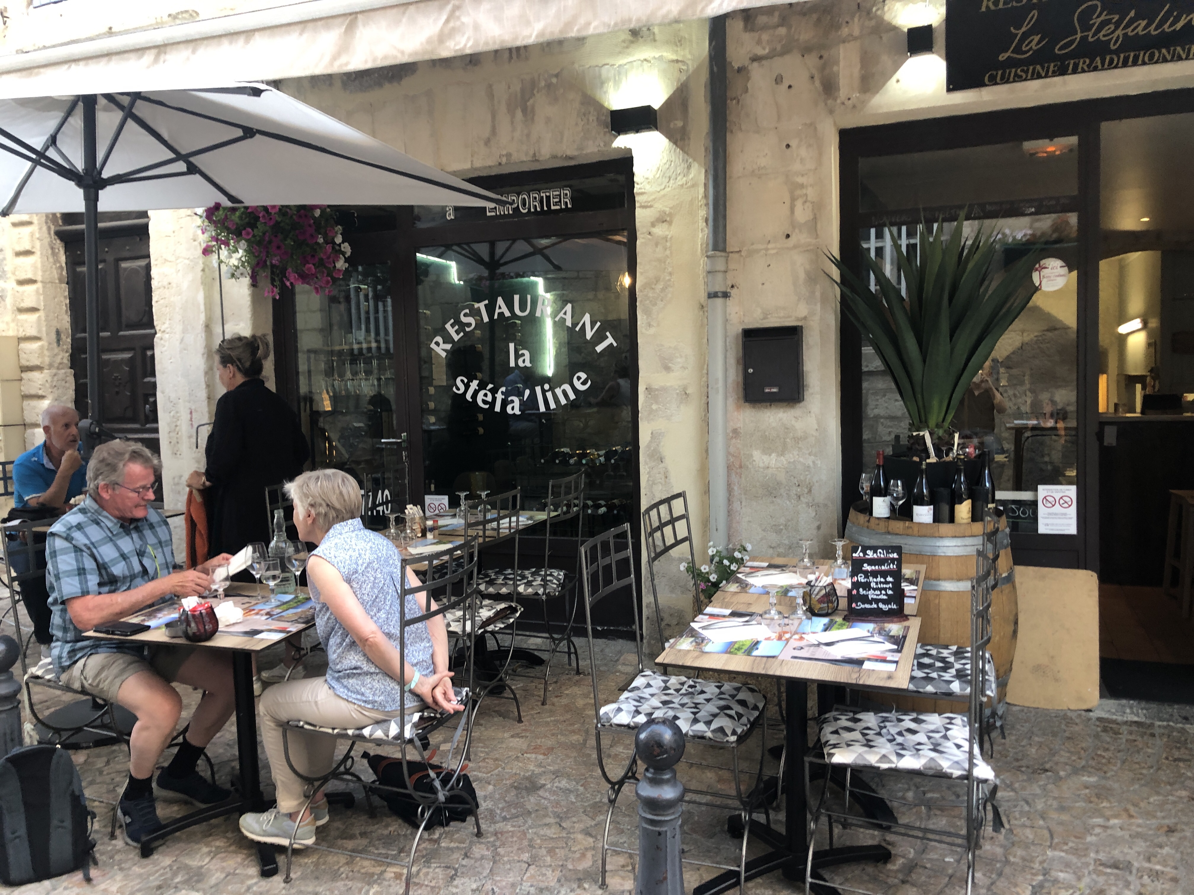 Nous recommandons le Stefa’line. La terrasse donne sur l’église, ce qui donne un joli cadre. Le service était super. Le seul « bémol » et qui explique les 4 étoiles pour la cuisine, les frites ne sont pas maison.