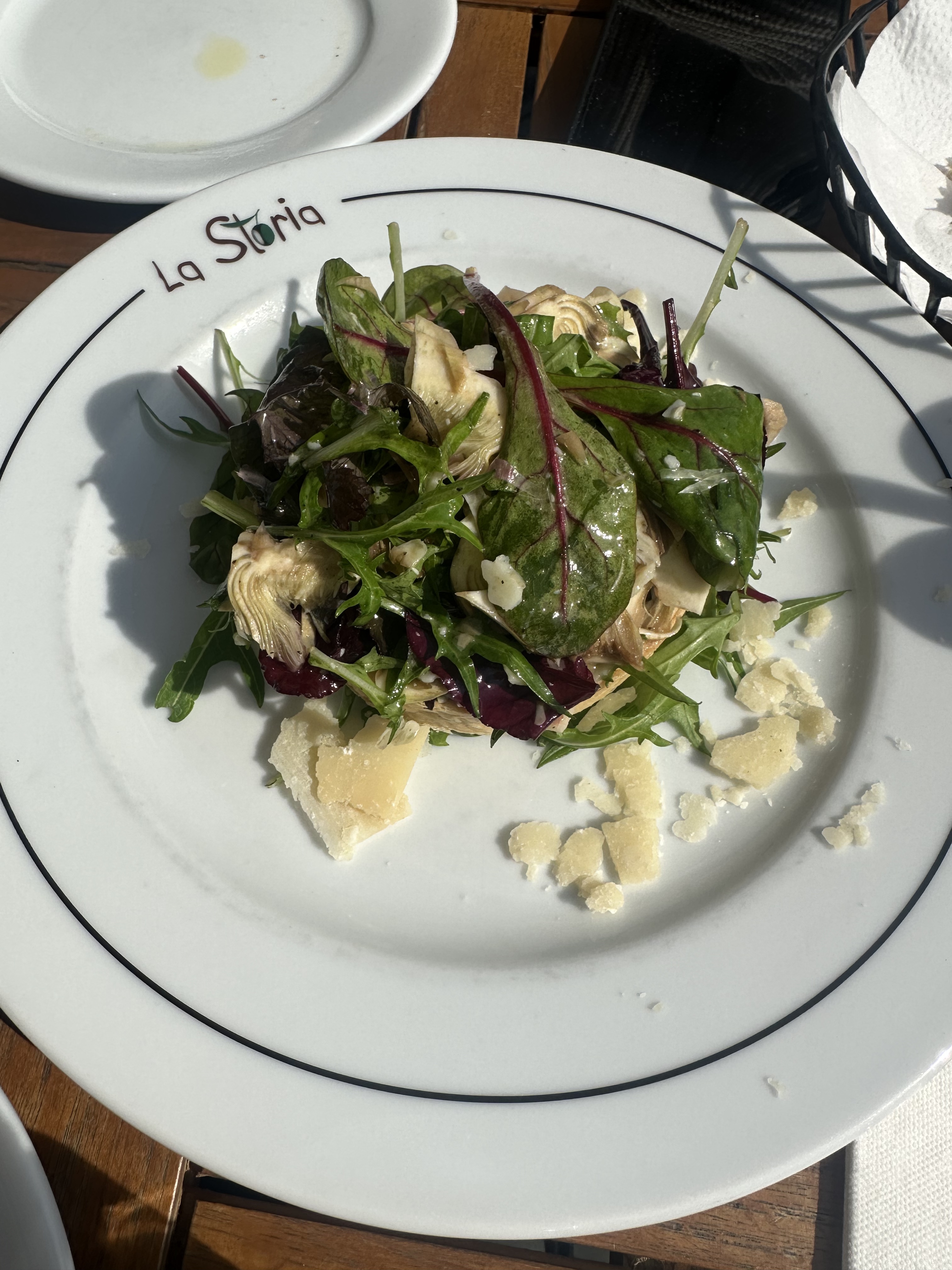 Le restaurant bénéficie d'un emplacement privilégié et propose un menu varié et peu coûteux. Le service était sympathique et rapide. Les repas étaient délicieux. Les arancinis et les pâtes sont particulièrement recommandées, elles étaient excellentes. Cependant, je dois déduire une étoile pour la salade verte et les pâtes malheureusement tièdes. La salade verte est UNIQUEMENT de la roquette.