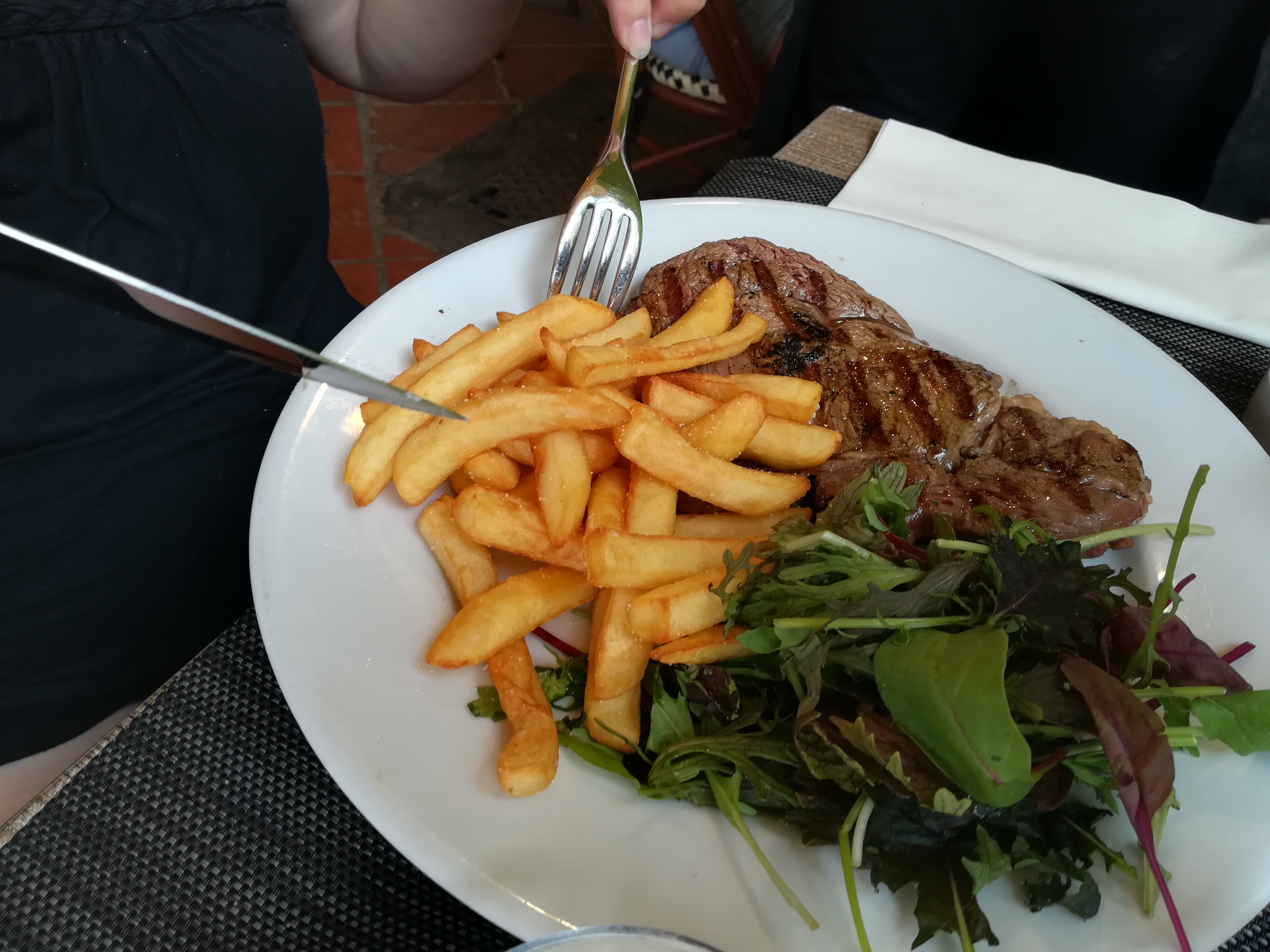 Au niveau du cadre, restaurant très sympathique, la décoration est simple et belle tout comme les serveuses. La note est un petit peu élevé mais pas plus qu'autre part à Nice. Les serveuses comme le serveur sont sympathiques et à l'écoute malgré la terrasse plus que comble. L'attente est plus que raisonnable. La viande est très bonne mais les frites ne sont pas incroyables en revanche. Au niveau des dessert une coupe glacée dans une coupe plus large que haute serait plus pratique. Le Get a goût de menthe et la glace était froide. Le café n'avait pas goût de chocolat. Le rosé avait goût de rosé. Je recommande.