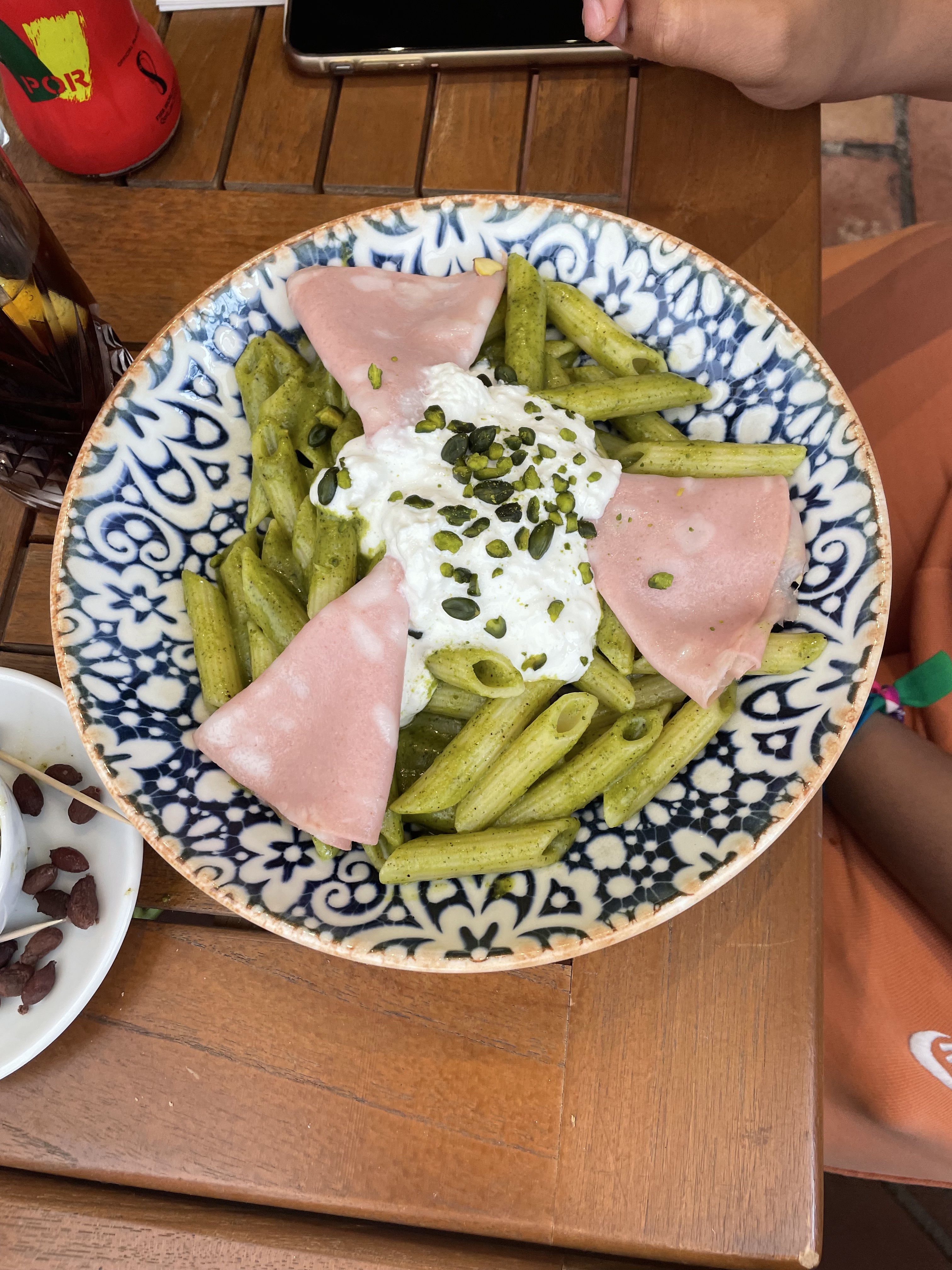 Quel déception ! Nous y avons mangé deux fois pendant nos vacances et c’était très moyen. La premiere fois le service était rapide malgré le monde présent dans le restaurant. La nourriture était bonne, un peu plat dans l’assaisonnement mais bon. La deuxième fois le restaurant n’était meme pas pleins, mais l’attente fut longue … La pizza était un peu simple mais bonne mais alors les pates a la mortadelle et pesto de pistache étaient vraiment très très décevante … Nous n’y retournerons pas.