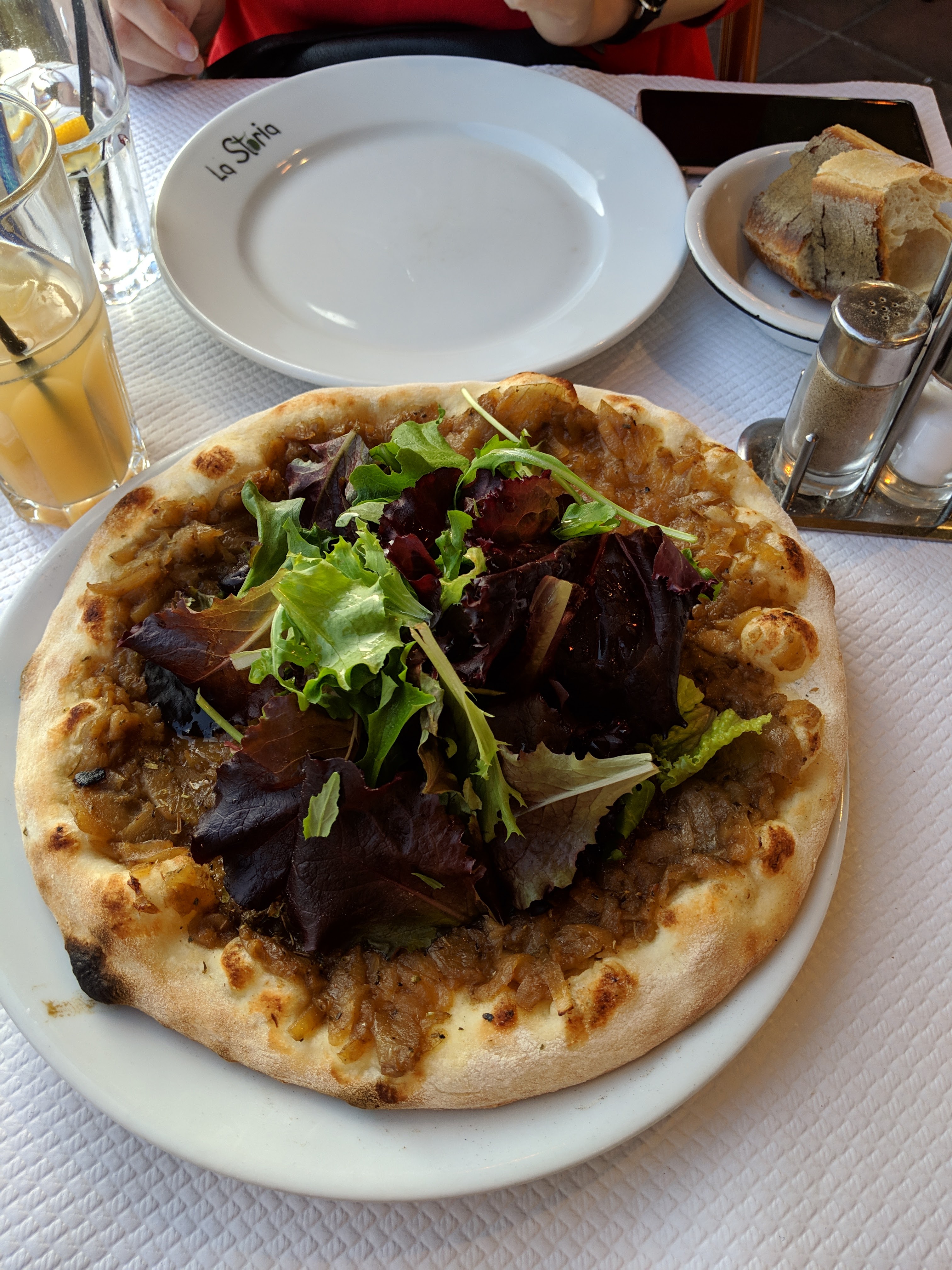 Restaurant correct. Pizza correctes. Rien de spécial, un attrape touriste. Absolument pas commercial. Il n’y a plus de straciatella alors vous devrez manger la pizza avec de la ricotta, que vous aimiez ça ou non ! Même pas le choix de changer de plat, alors que ce n’était pas ce que vous vouliez manger. Aucun geste commercial bien sûr… vous paierez le prix fort ! Vous pourrez attendre bien 20 minutes avant de pouvoir régler et partir… Tarte au pomme congelée… Au moins le serveur était agréable et comprenait notre désarroi !