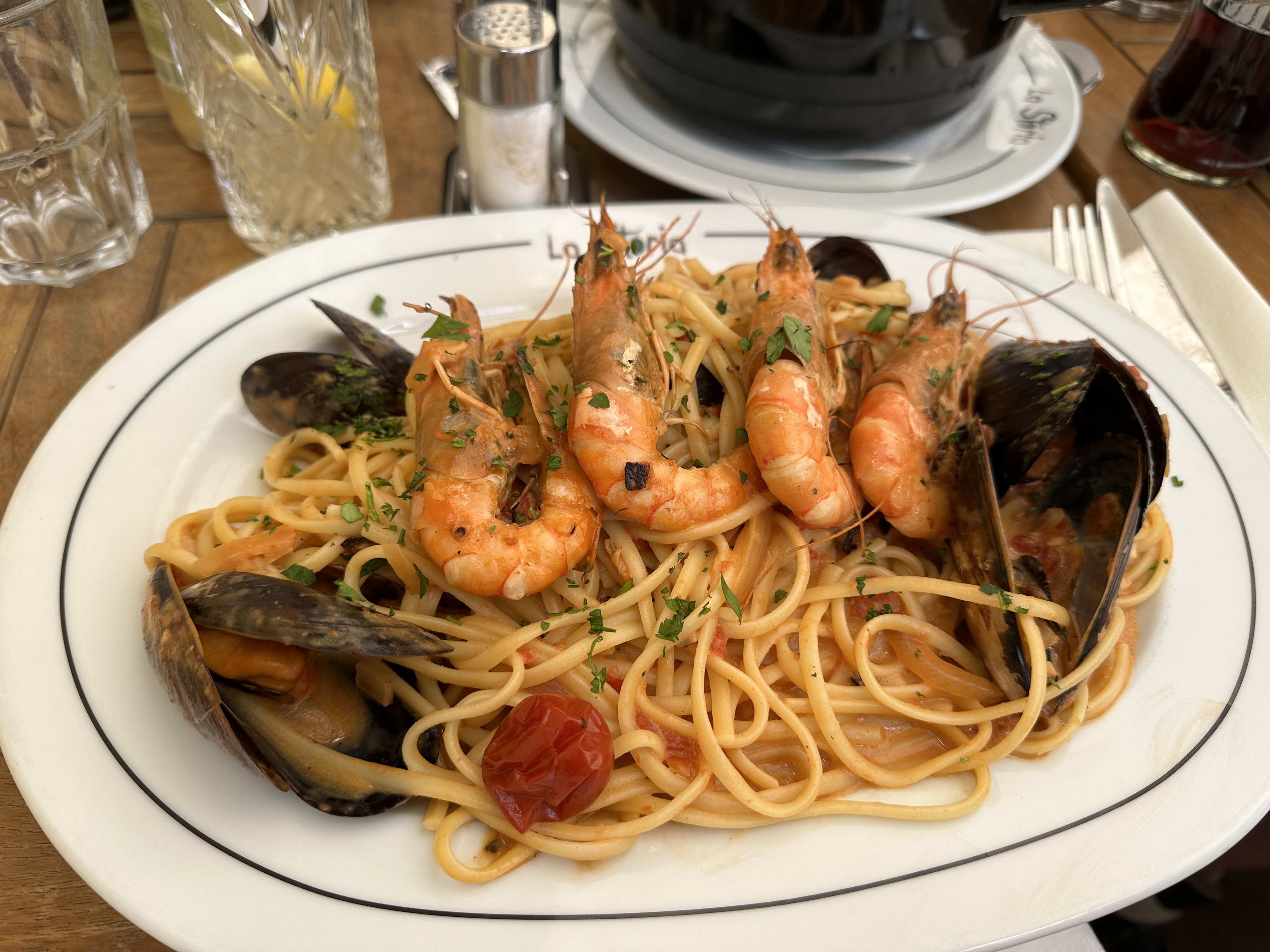 Nous avons choisi ce restaurant car bien situé. Le restaurant propose une grande variété de plats. Nous avons choisi un menu entrée plat dessert à 20€. Les produits sont frais et les plats délicieux. Je pense à ces linguines safranées au gambas (hors menu). La citronnade servi en apéritif était très bonne. Nous recommandons !