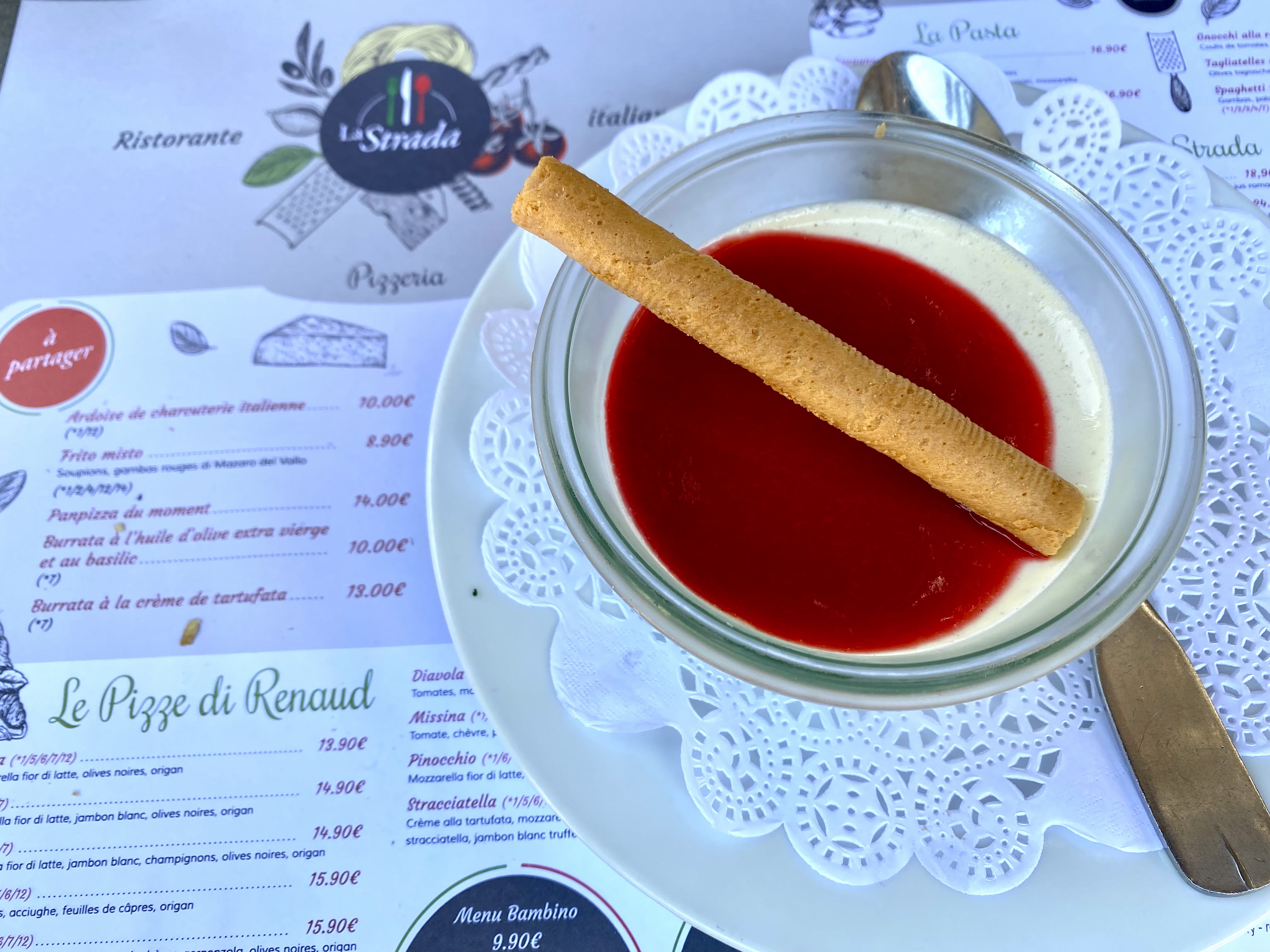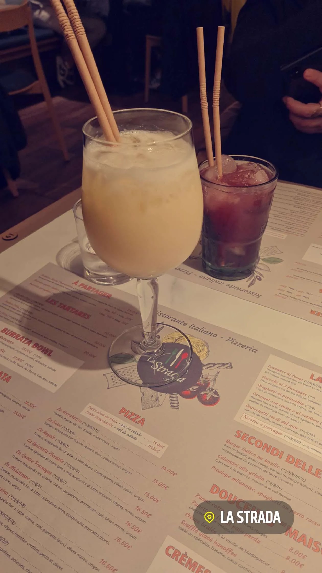 C'est la première fois que je me rends à la Strada. Une bonne adresse à avoir... Sincèrement, la qualité est au rendez-vous ! Comptez environ 40 euro par personne boisson plats desserts. Un service irréprochable. C'était au TOP ! L'équipe est sympathique. Merci.