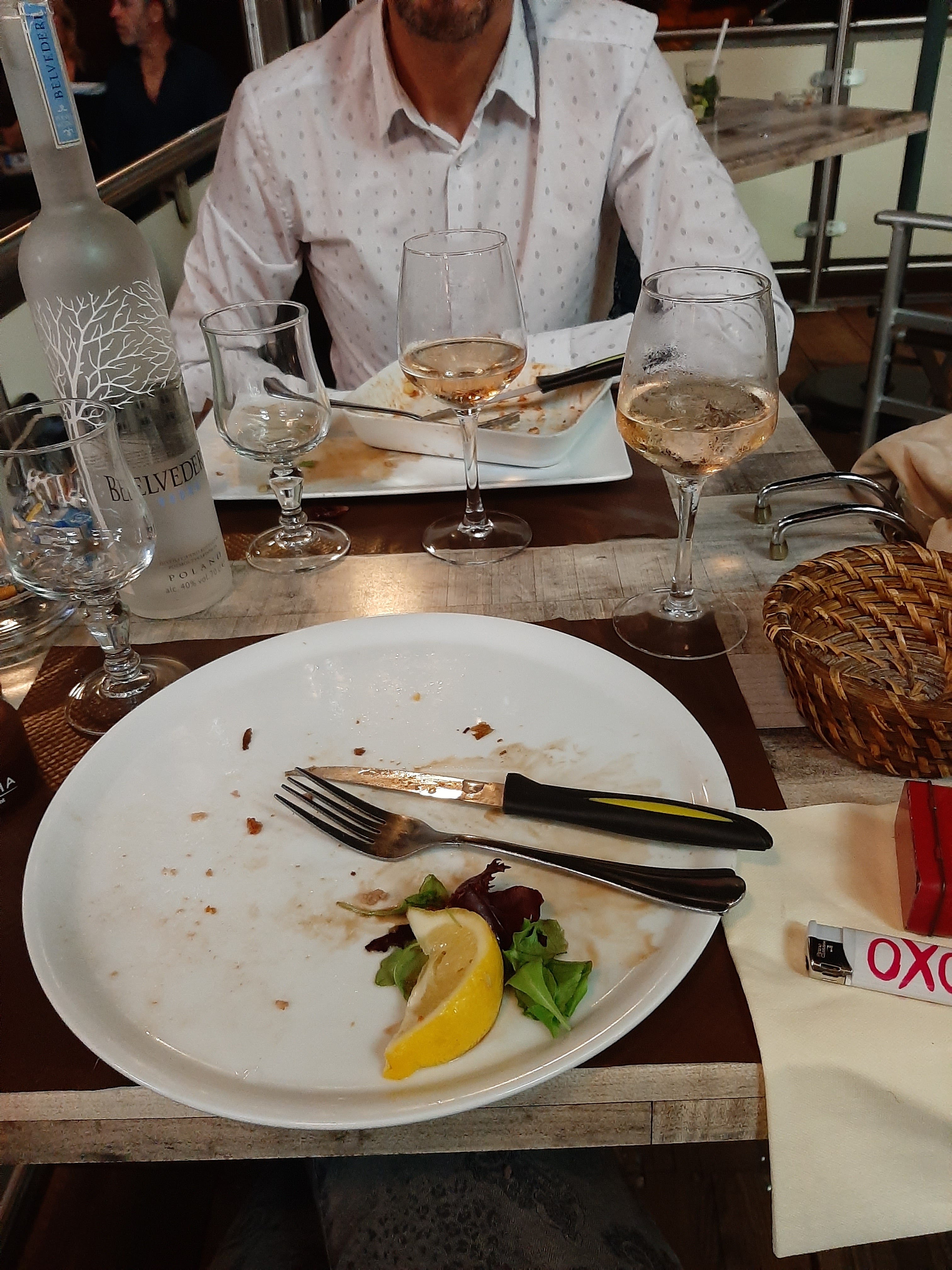 Des pâtes sauce pesto maison sans aucun basilic, sans goût et noyées dans de la pseudo crème pour 20€.. et vraiment pas al dente... Un mini ravier de Parmesan pour une table de 12 personnes... Une bouteille de vin attendue 1/2 h ! L'escalope de ma voisine : un morceau de caoutchouc brûlé.....