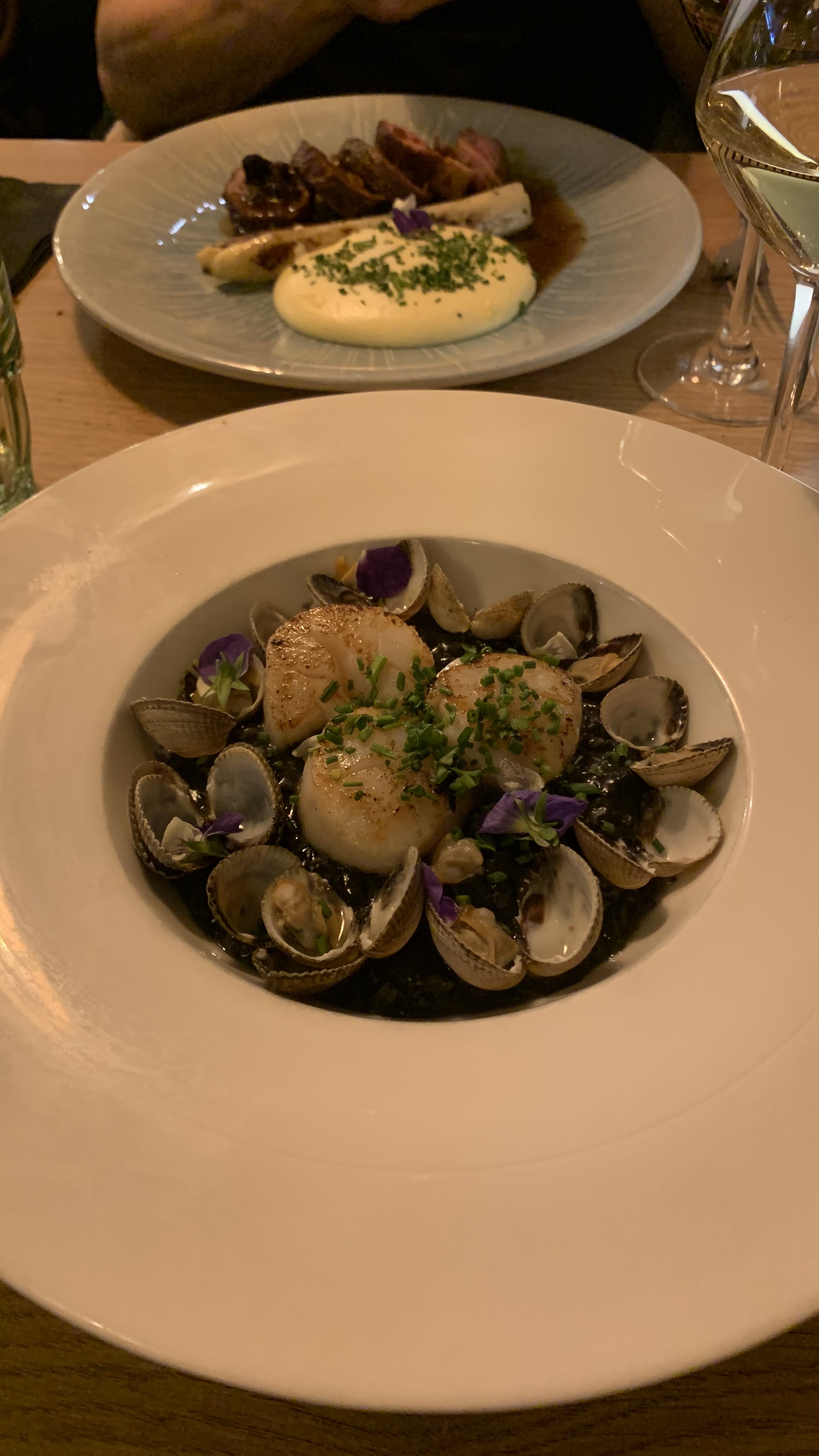 Tres bonne ambance. Diner excelent, risotto de Gambas copieux, faux filet café de Paris au top... Belle carte des vins, bien centrée sur les petites appelations Bon rapport qualité prix