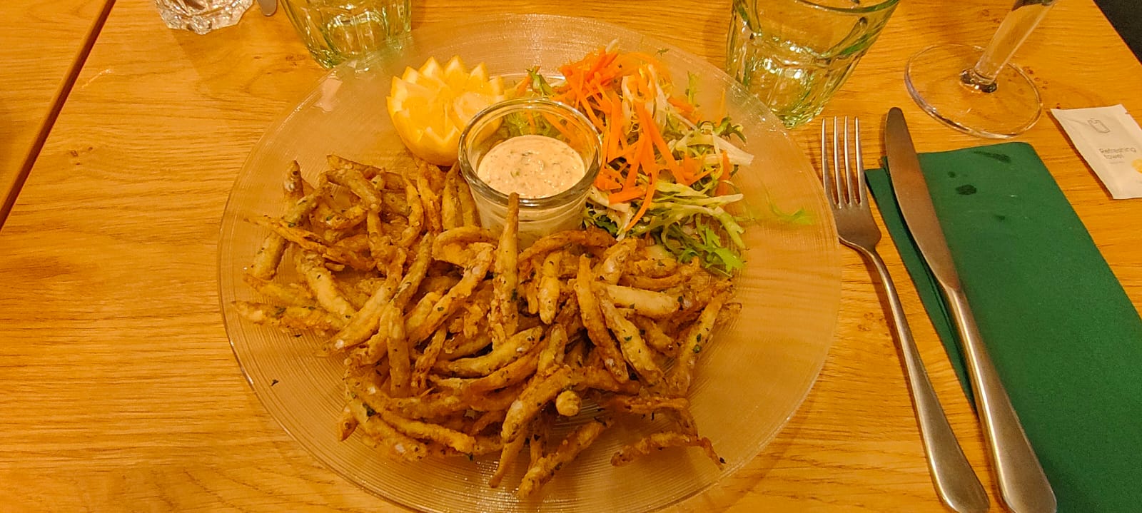 En groupe de 9 sportifs nous avons été tous impressionnés à tous les niveaux , la qualité de la cuisine et une étoile supplémentaire si c'était possible pour le service , rapide, exceptionnel , efficace et avec le sourire ! Perso je recommande la friture d'éperlan, croustillante mais moelleuse à l'intérieur ! Merci bcp ; A recommander