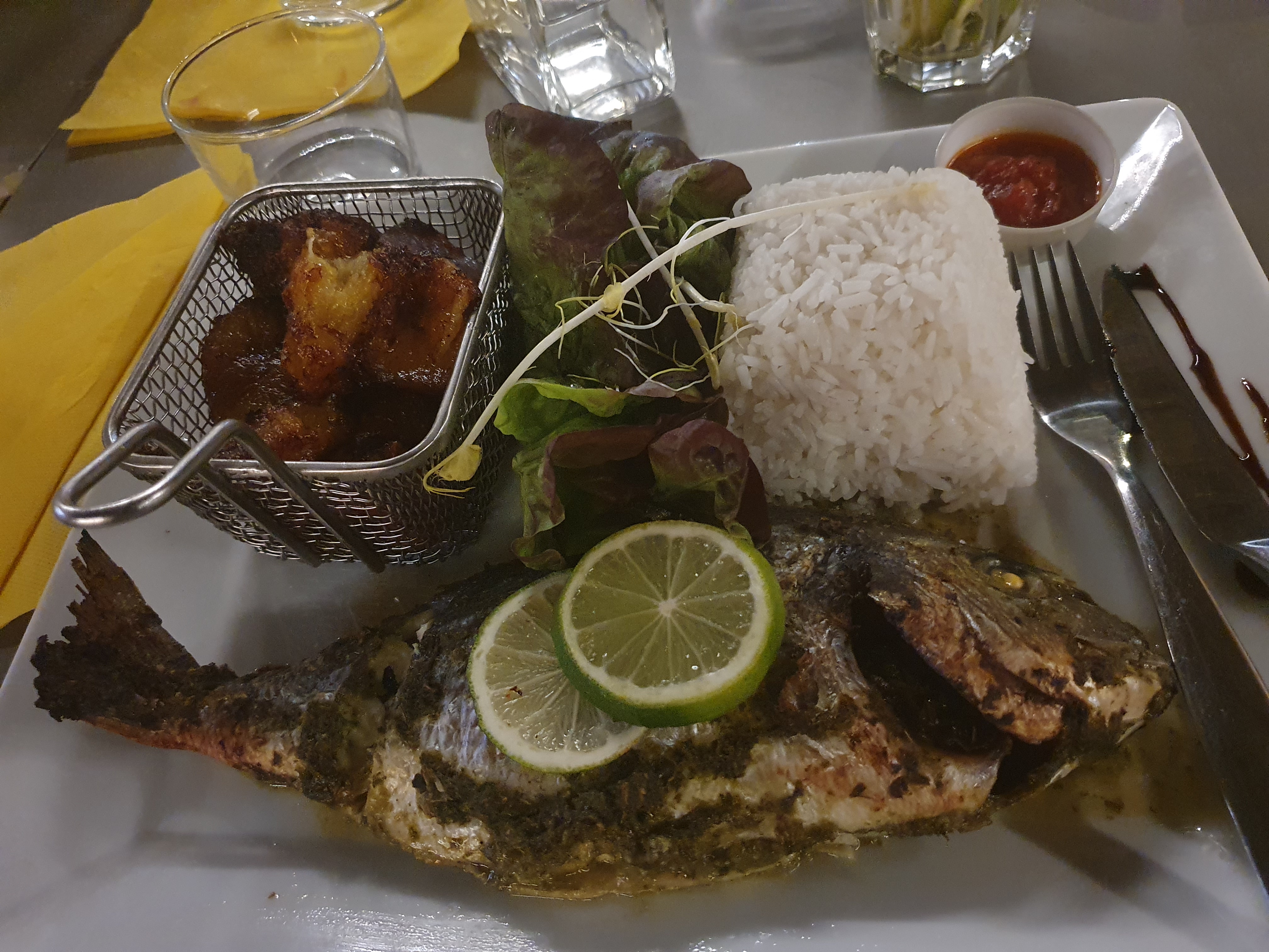 J'ai commandé via deliveroo, les plats et les accompagnements ne manquent pas de saveur, les bananes plantains sont un peu épaisses mais très bonnes !