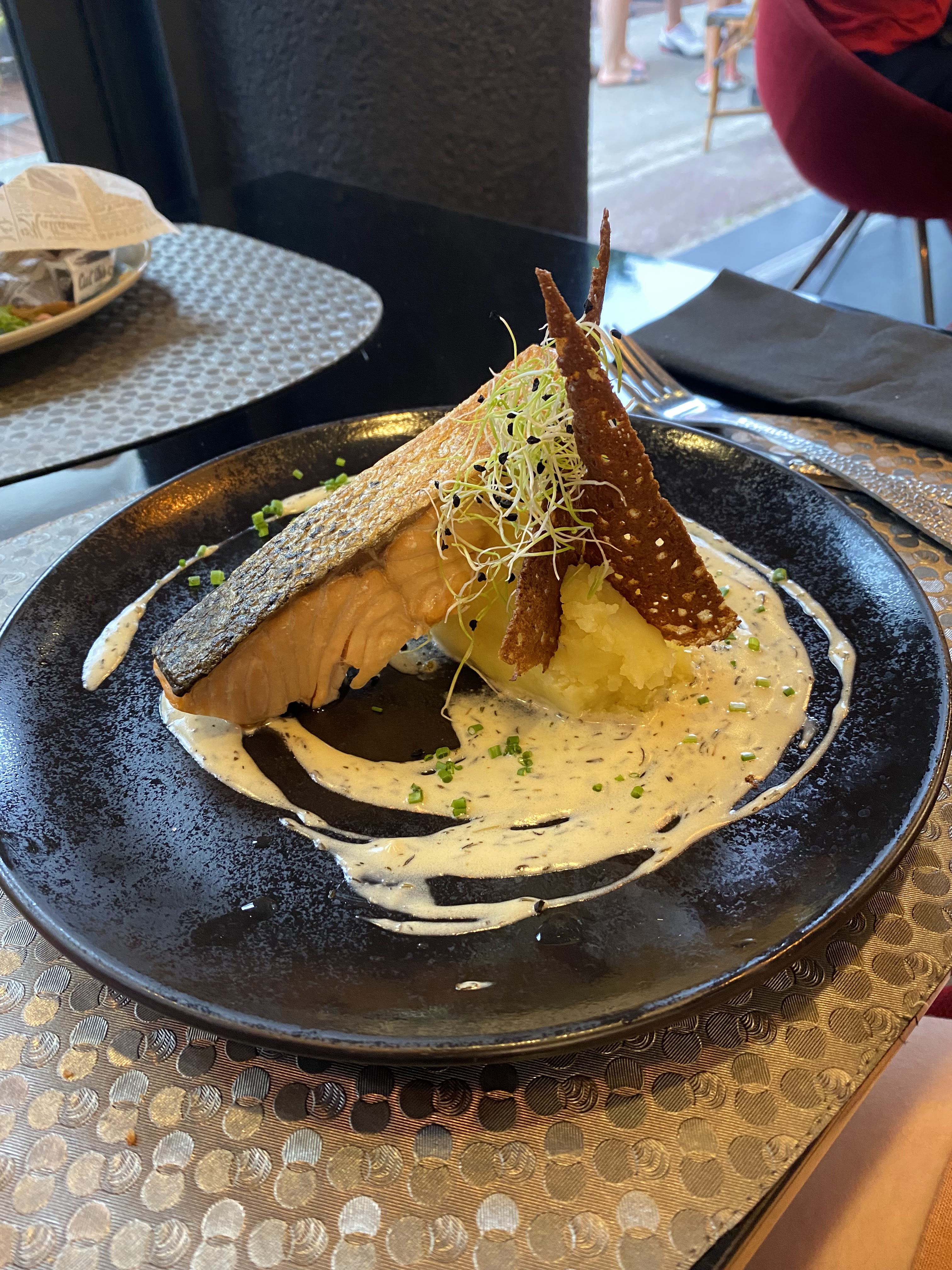 Accueillant, délicat et délicieux. Le pavé de saumon, une ptite merveille. Le fondant chocolat wouah A recommander vivement 🌸☺️