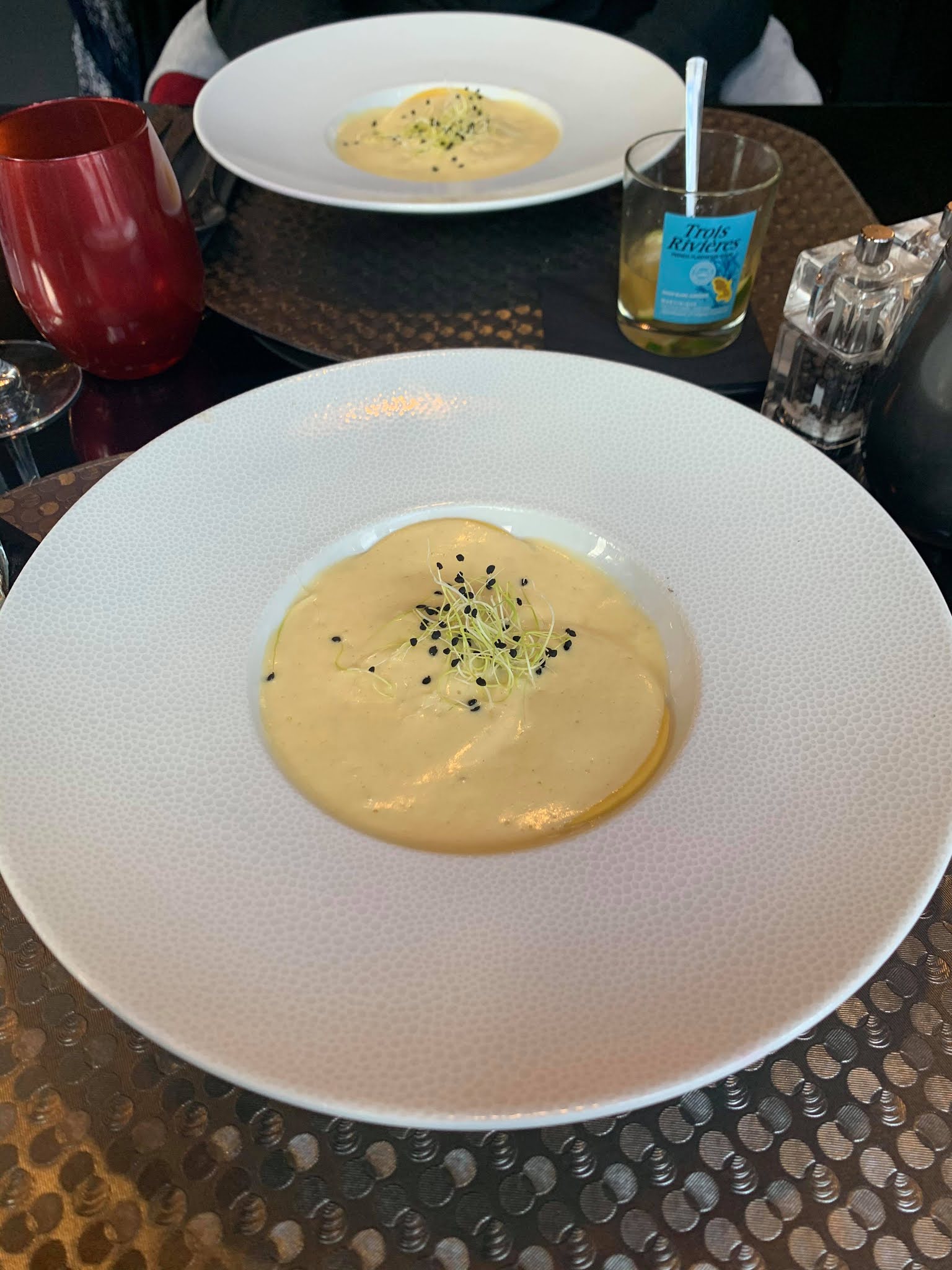 Nous avons pris à la carte les ravioles de cèpes au foie gras : un vrai régal très délicat et raffiné .personnel très attentif. A conseiller vivement