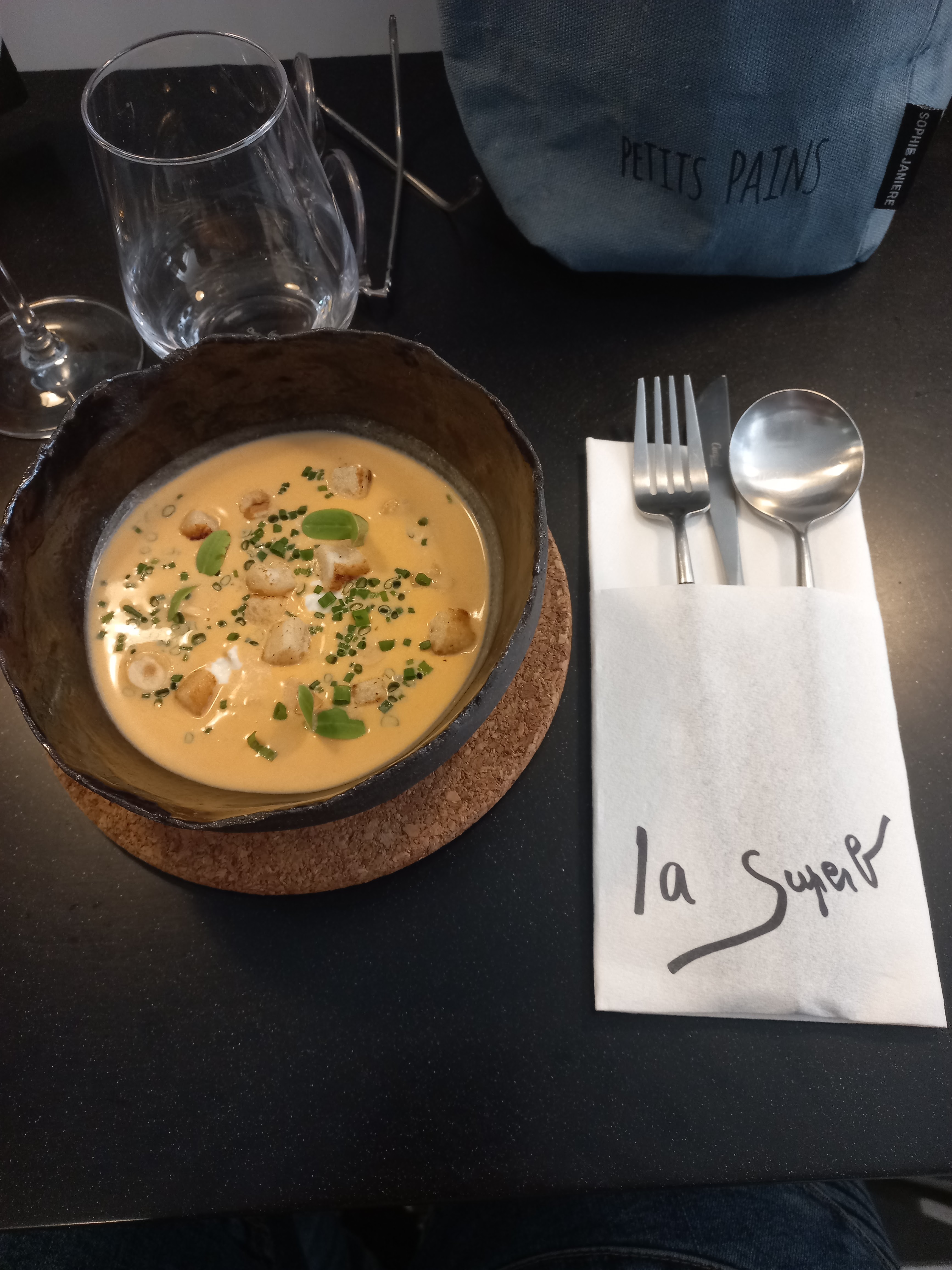 J'aime beaucoup ce concept. Un chef soucieux de vous satisfaire et qui commente/décrit ses propositions en les élaborant devant vous. Un accueil de la maîtresse de maison aimable et encourageant.Une cuisine juste et savoureuse faite d'ingrédients simples et superbement mis en valeur comme l'oignon, le hadock, la poitrine de boeuf ( de Beaune..j'en conviens). Un choix de vins au verre qui explore la Bourgogne dans ce qu'elle a de meilleur. Allez...Je me lâche : la Superb.. c'est super... be.