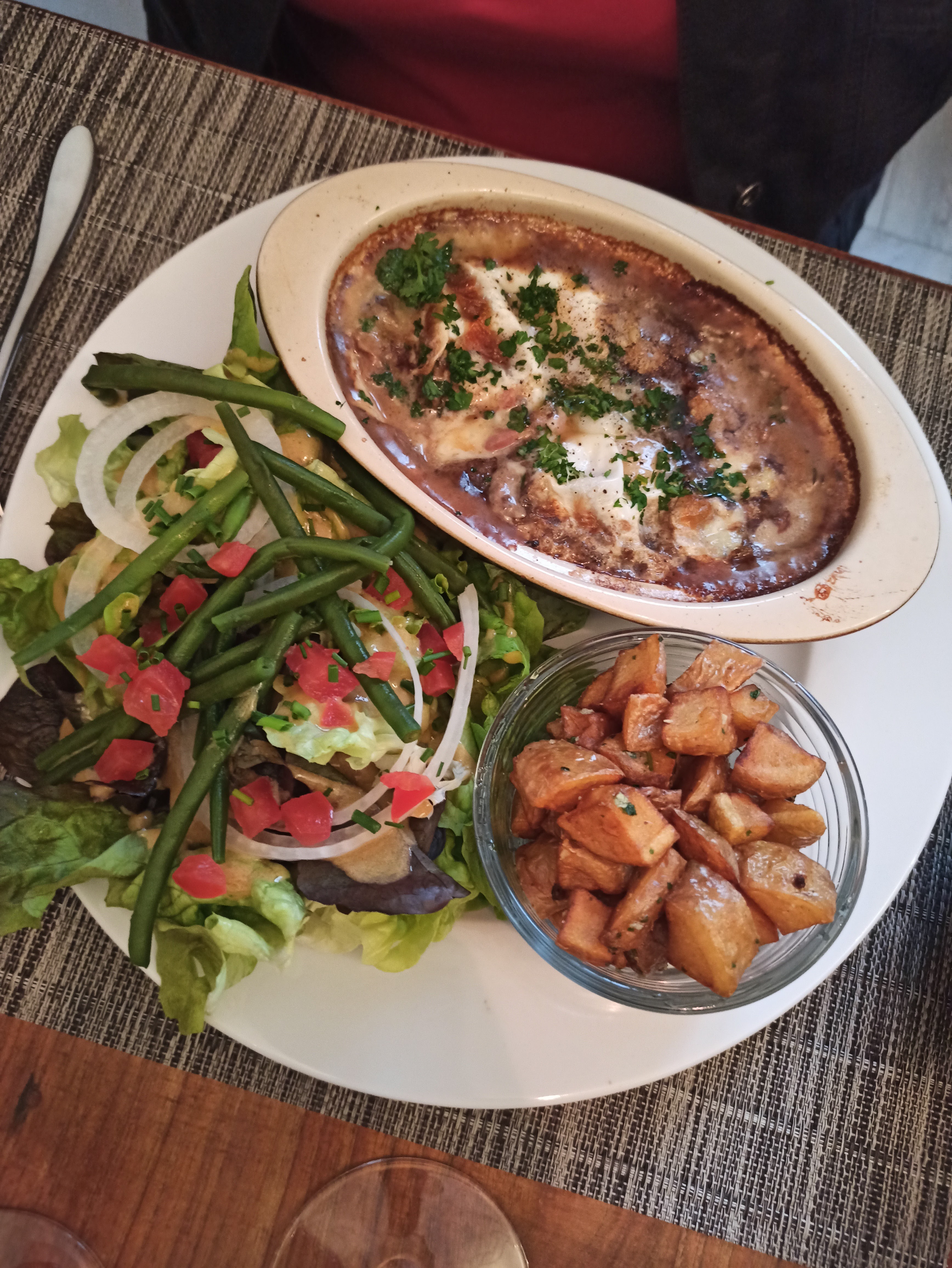 Bon restaurant. Mon velouté était excellent. Les Rognons étaient un peu basique à mon goût. La galette de pommes de terre de ma femme était frie et trop huileuse. A part ça rien à redire. Seul la chantilly n'est pas faite maison, dommage. Je recommande.