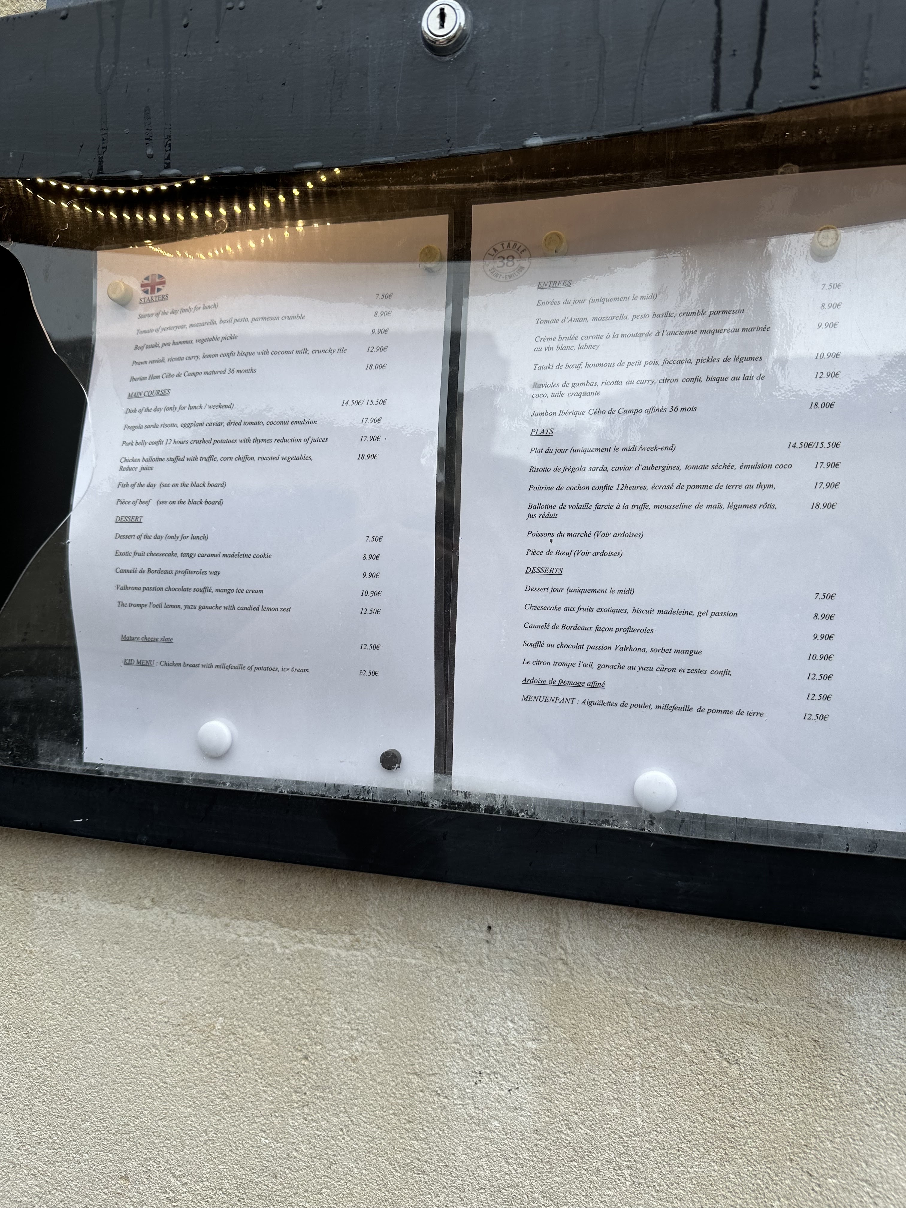 Nous nous sommes arrêtés par hasard à la table 38 et nous n avons pas été déçus ! Les plats sont délicieux et raffinés, les prix très très abordables et le service au top ! Cette adresse vaut le détour