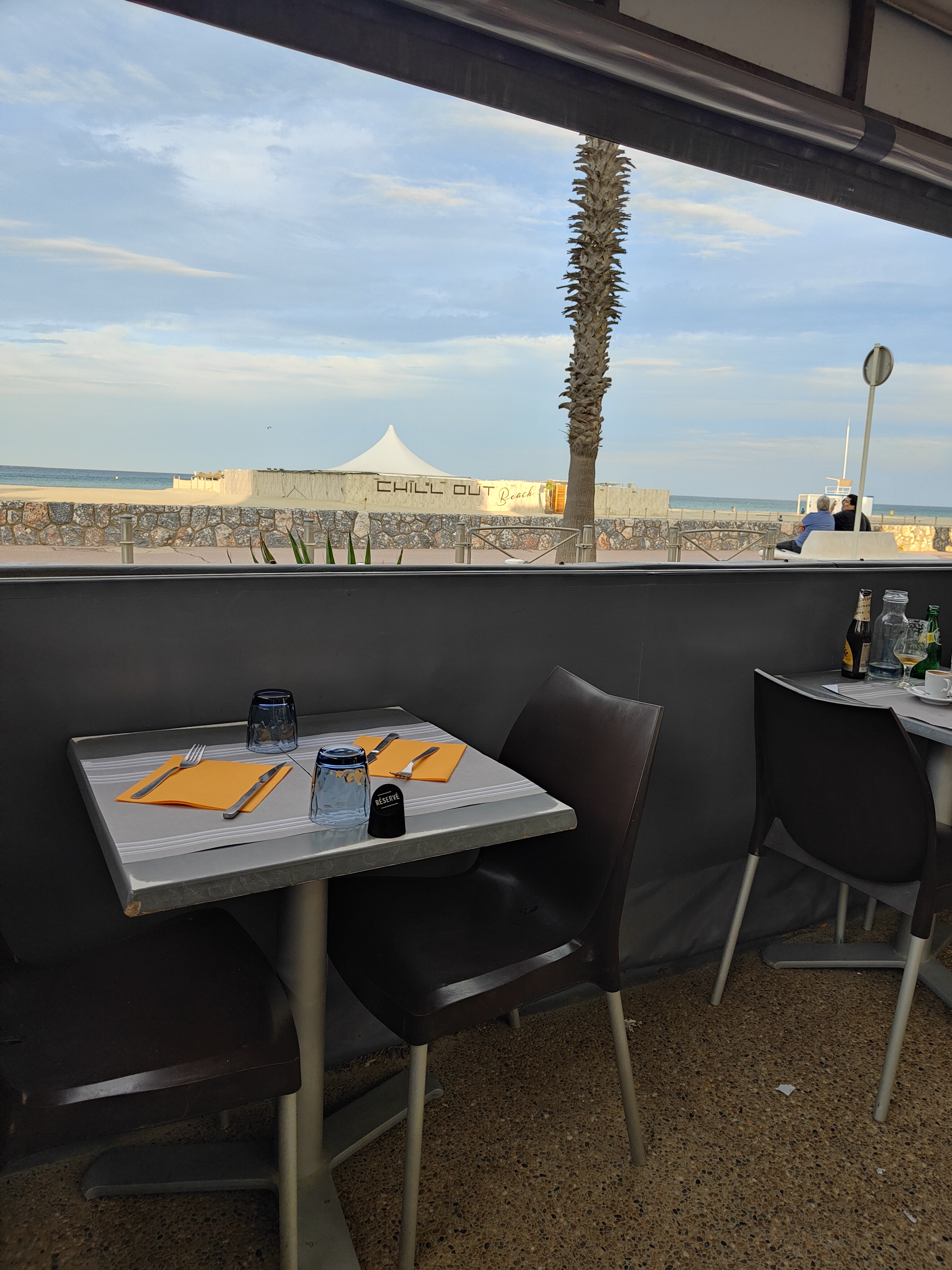 Le restaurant est très bien situé puisqu'il est au bord de la mer et donc avec une très belle vue. Par contre les plats ont été une grande déception : le poisson était sec tellement il avait été cuit et le chorizo était également super dur (impossible à couper...) Je ne conseille donc pas du tout ce restaurant.