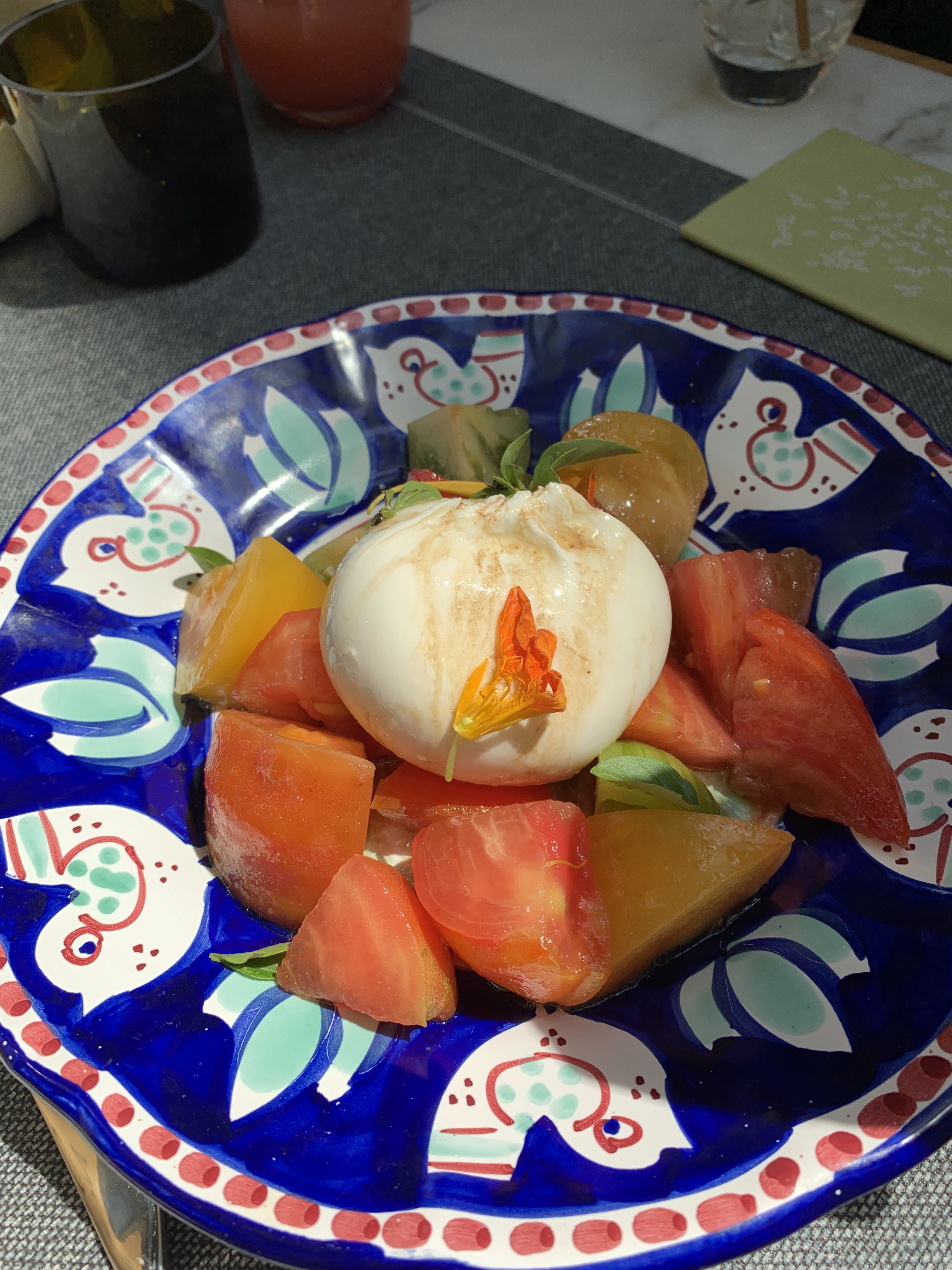 Délicieux bain de lumière diffusée par la verrière. Rafraichissante salade aux 3 canards.