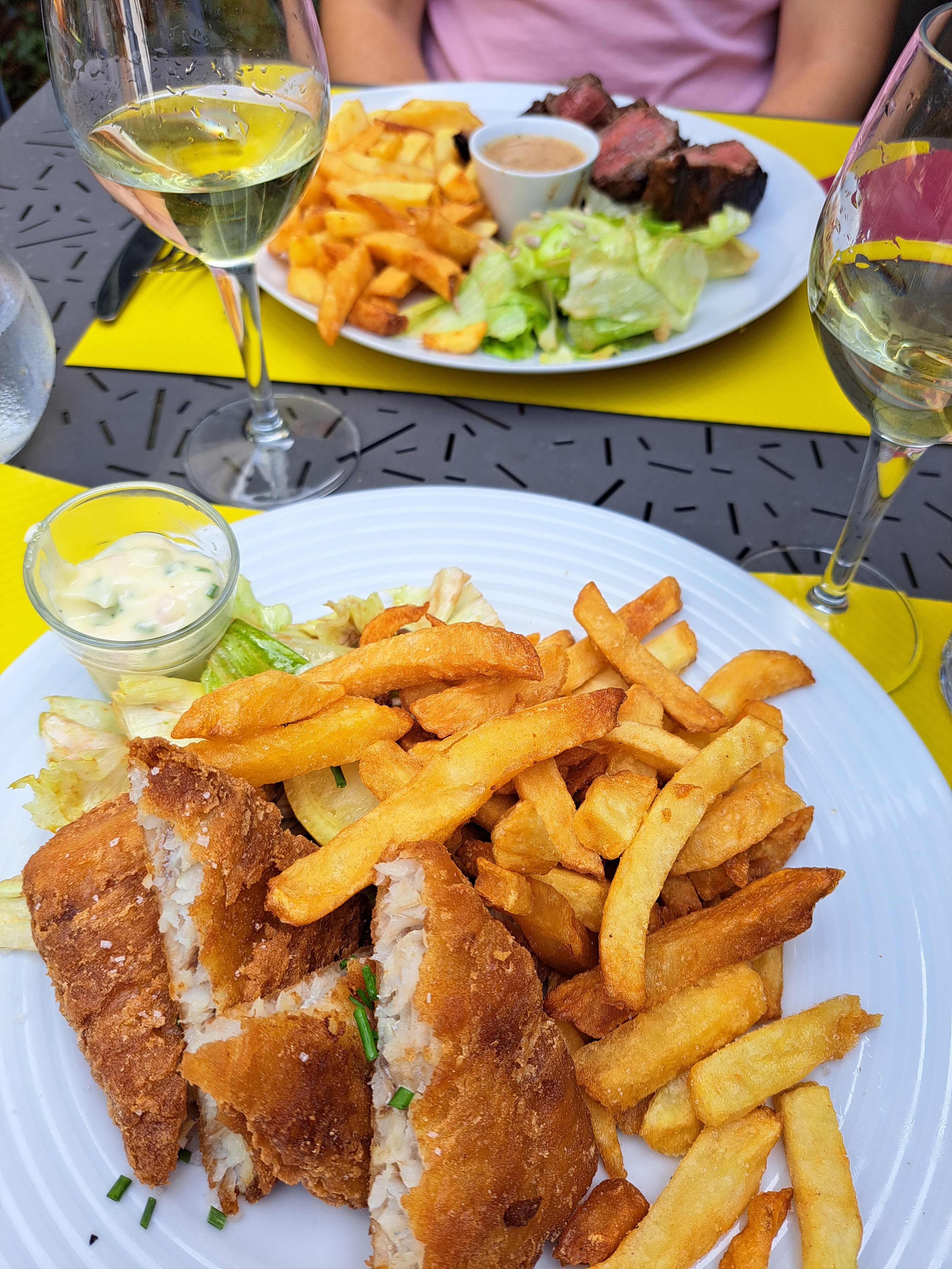Je ne sais pas pourquoi j'ai attendu si longtemps pour venir ! J'ai déjeuné dans la terrasse extérieure avec mon mari, et la personne qui nous a accueillis et servis était super sympa et amicale. Les plats (fish & chips et pièce du boucher) étaient délicieux et abondants, cuits à la perfection, avec des ingrédients frais et vraiment savoureux ! Dommage que nous n'ayons pas eu le temps de prendre un dessert, mais nous reviendrons certainement :)