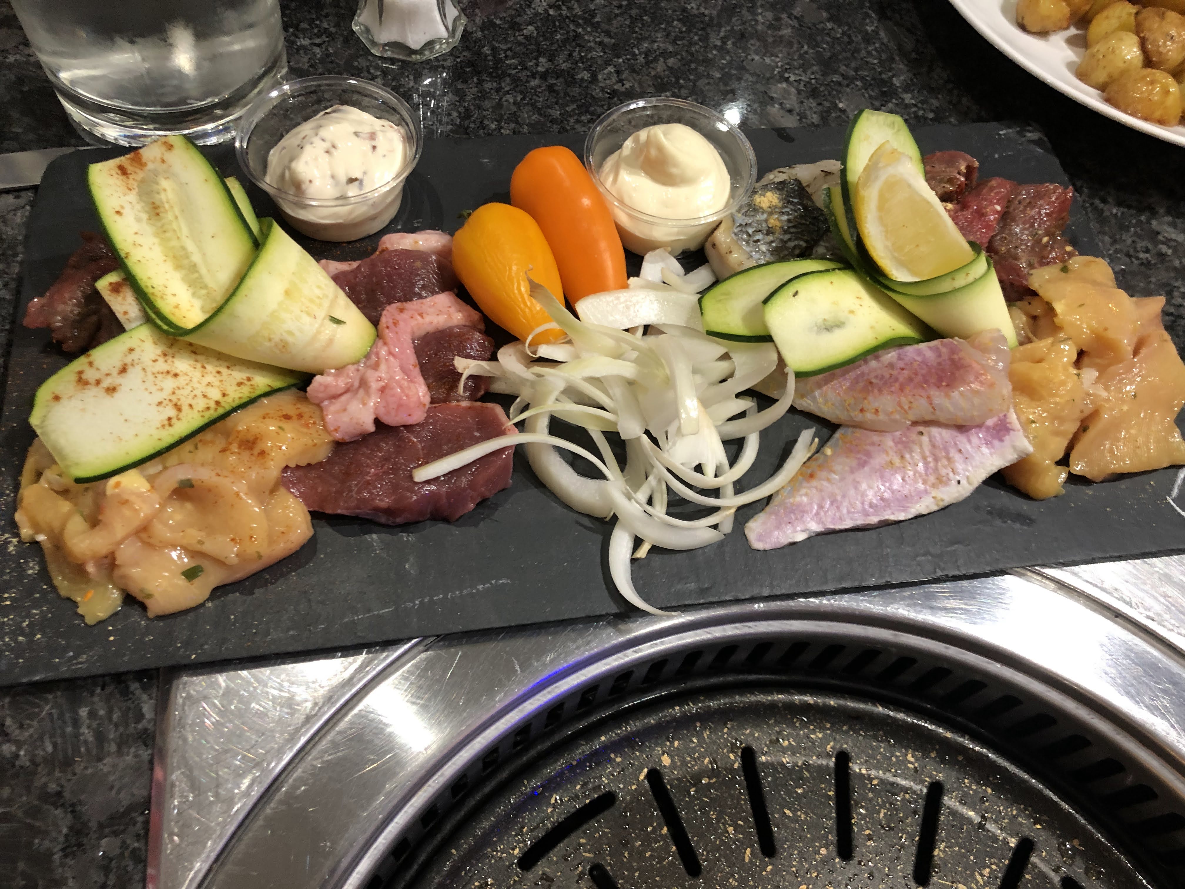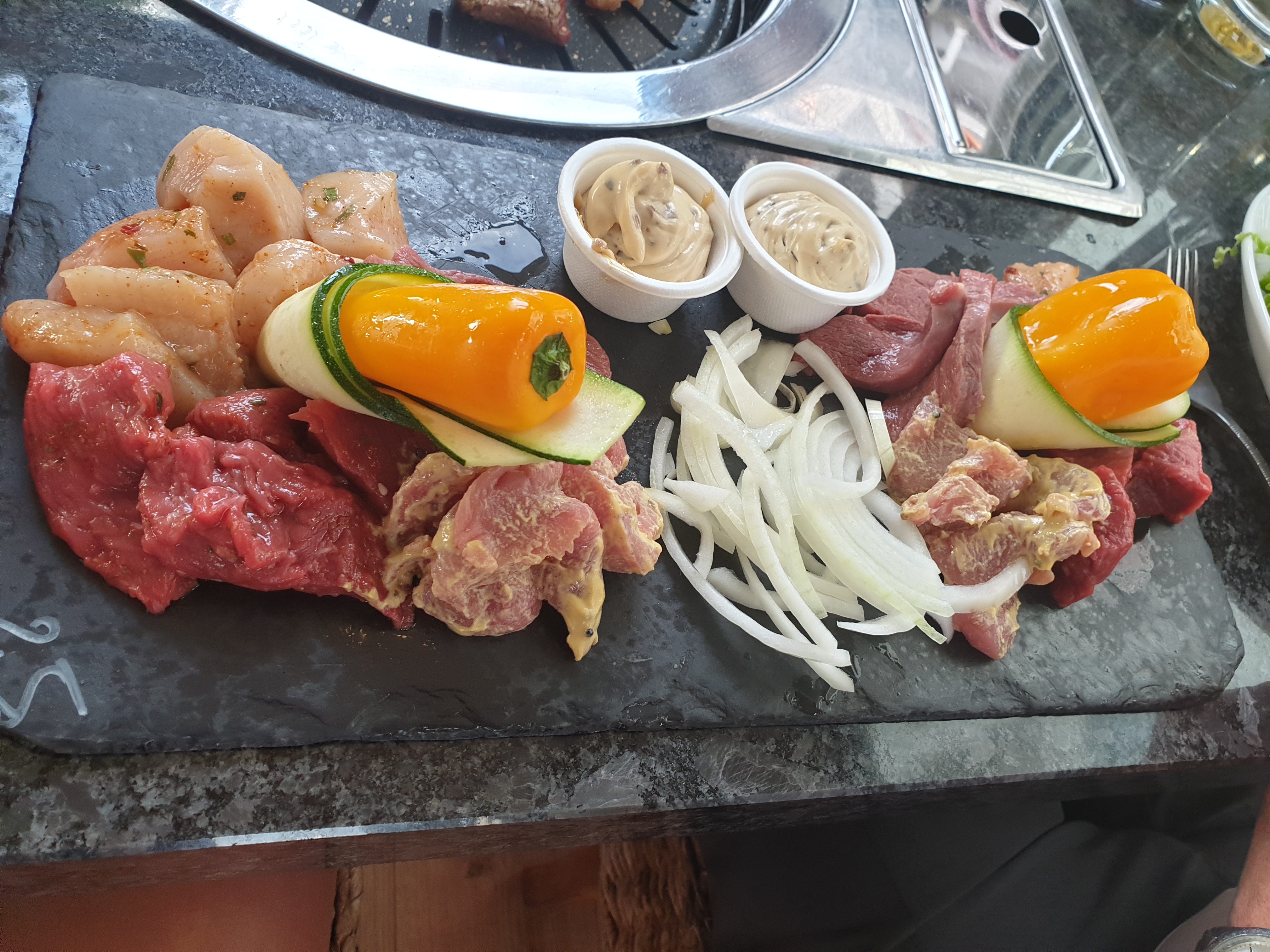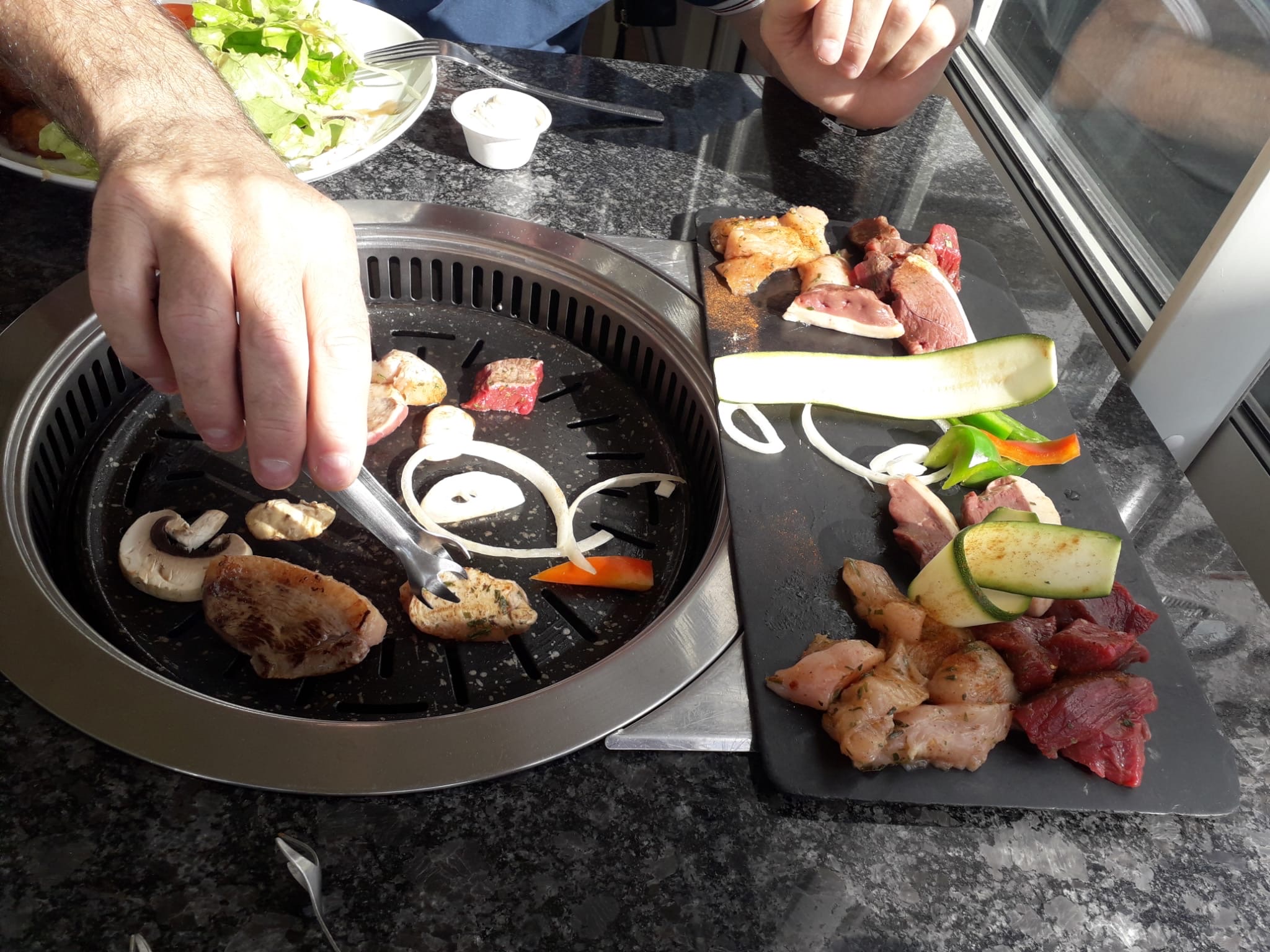 Accueil très agréable, concept de service où l'on grille ses aliments extra, qualité, saveur et quantité tout était réuni, nous avons passé un bon moment dans ce restaurant. Et pour clore personnel très aimable.