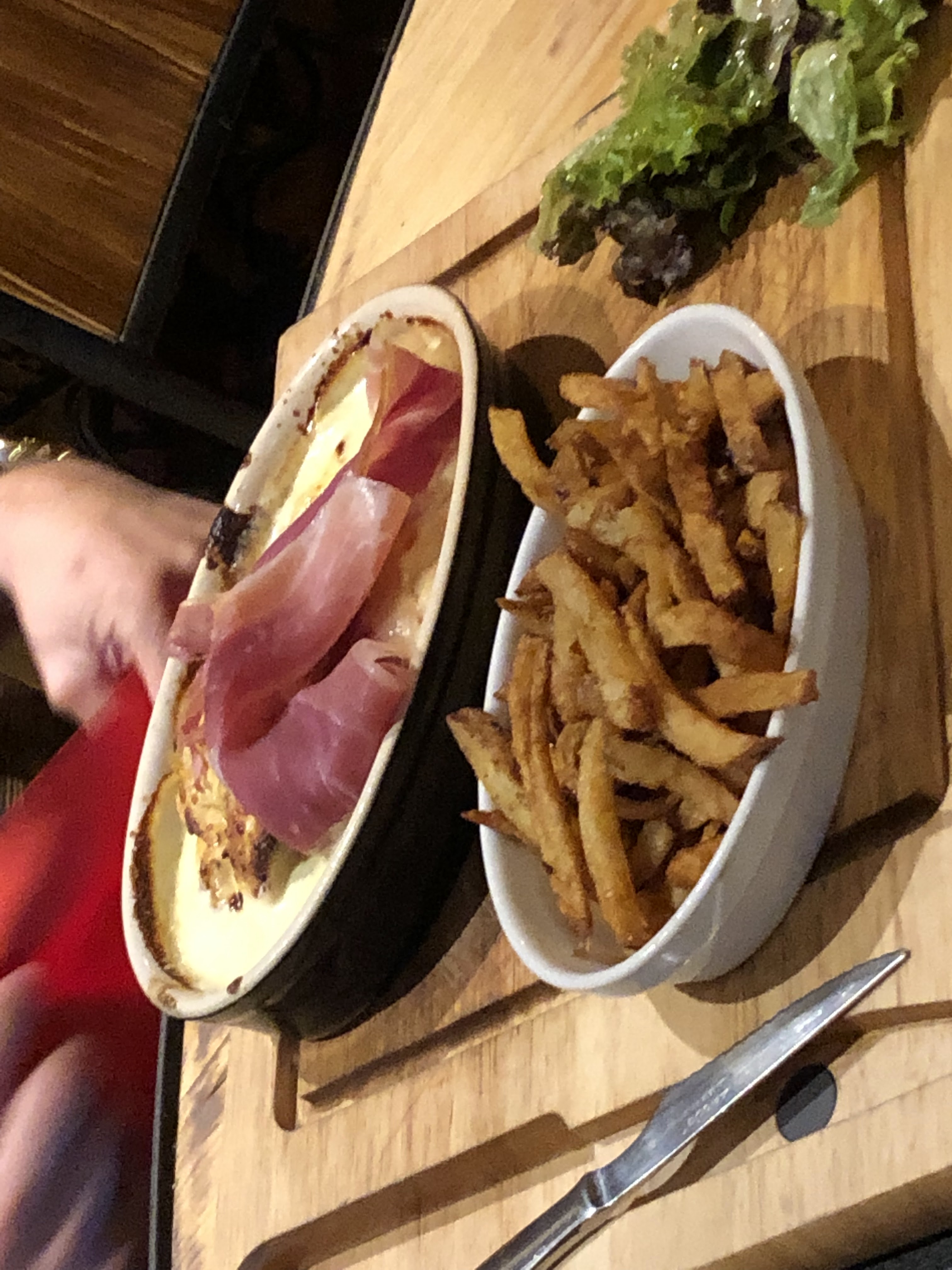 La ratatouille froide (visiblement en boîtes), un vin local ignoble. Une demie meule pour un couple, donc le fromage pas fini va être réutilisé (merci l'hygiène). Besoin d'appeler 4 fois le serveur pour le réchaud qui manque de gaz, idem pour les accompagnements. La viande était ok, j'ai vu passer des fondues bien huileuses. Bref, y'a bien mieux dans le coin. Ah oui et c'est pas donné en plus.