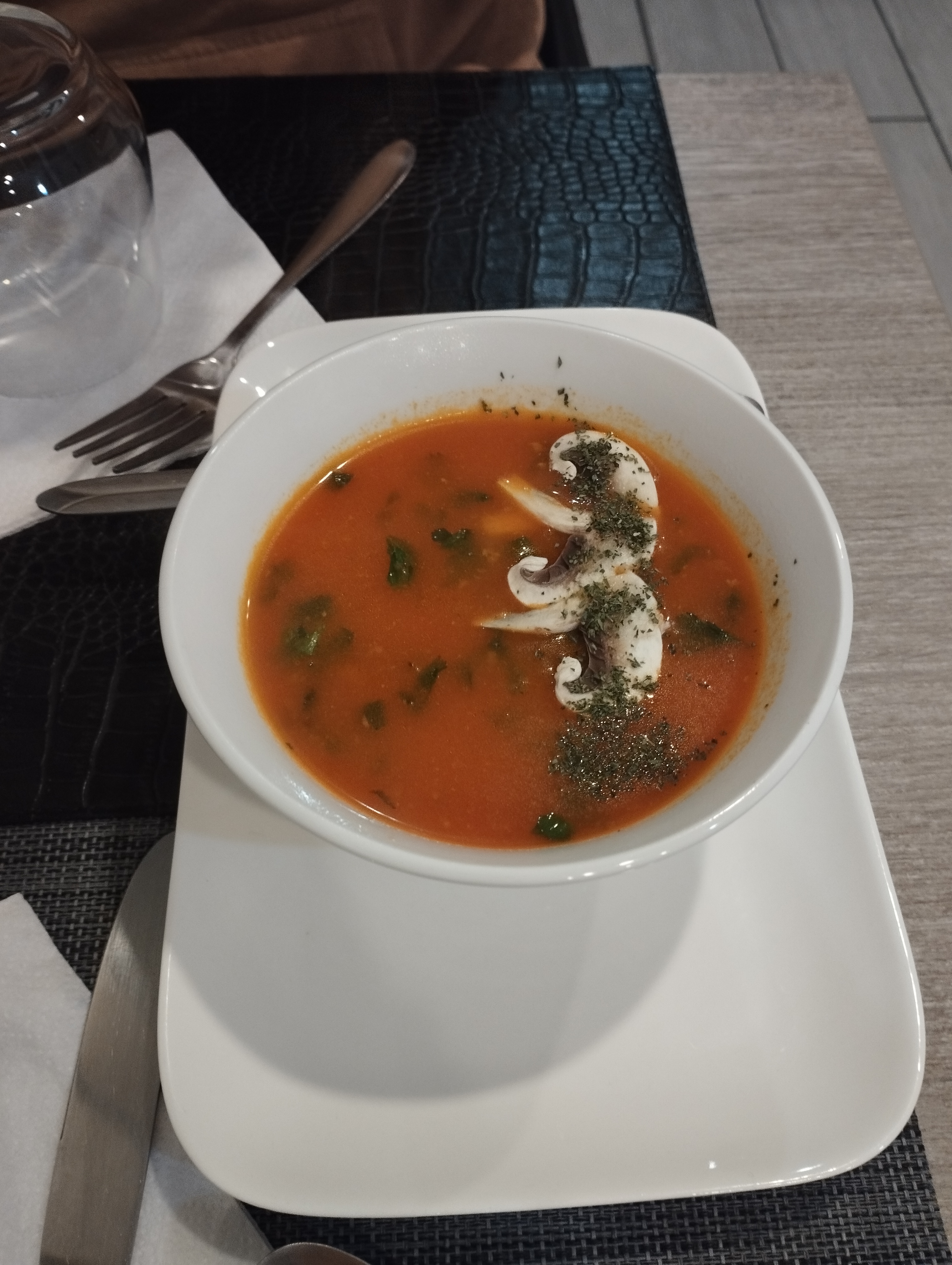 un régal pour les papilles...la soupe en entrée est savoureuse..et le plat bien parfumé !!