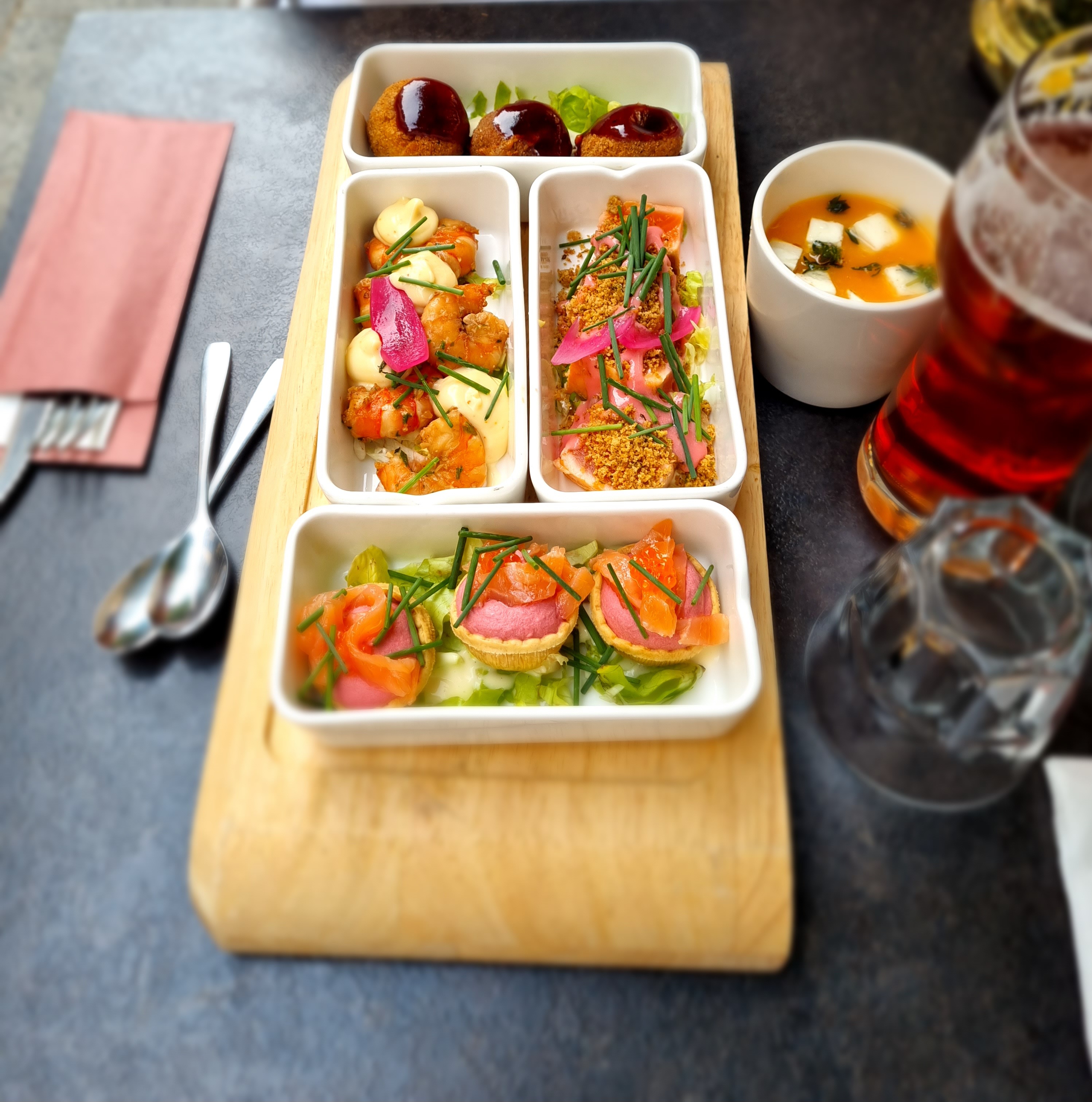 Un choix de tapas originaux et superbement présentés! Un régal pour les yeux et pour les papilles! Très belle découverte que je vous conseille si vous aimez les repas pas trop classiques.