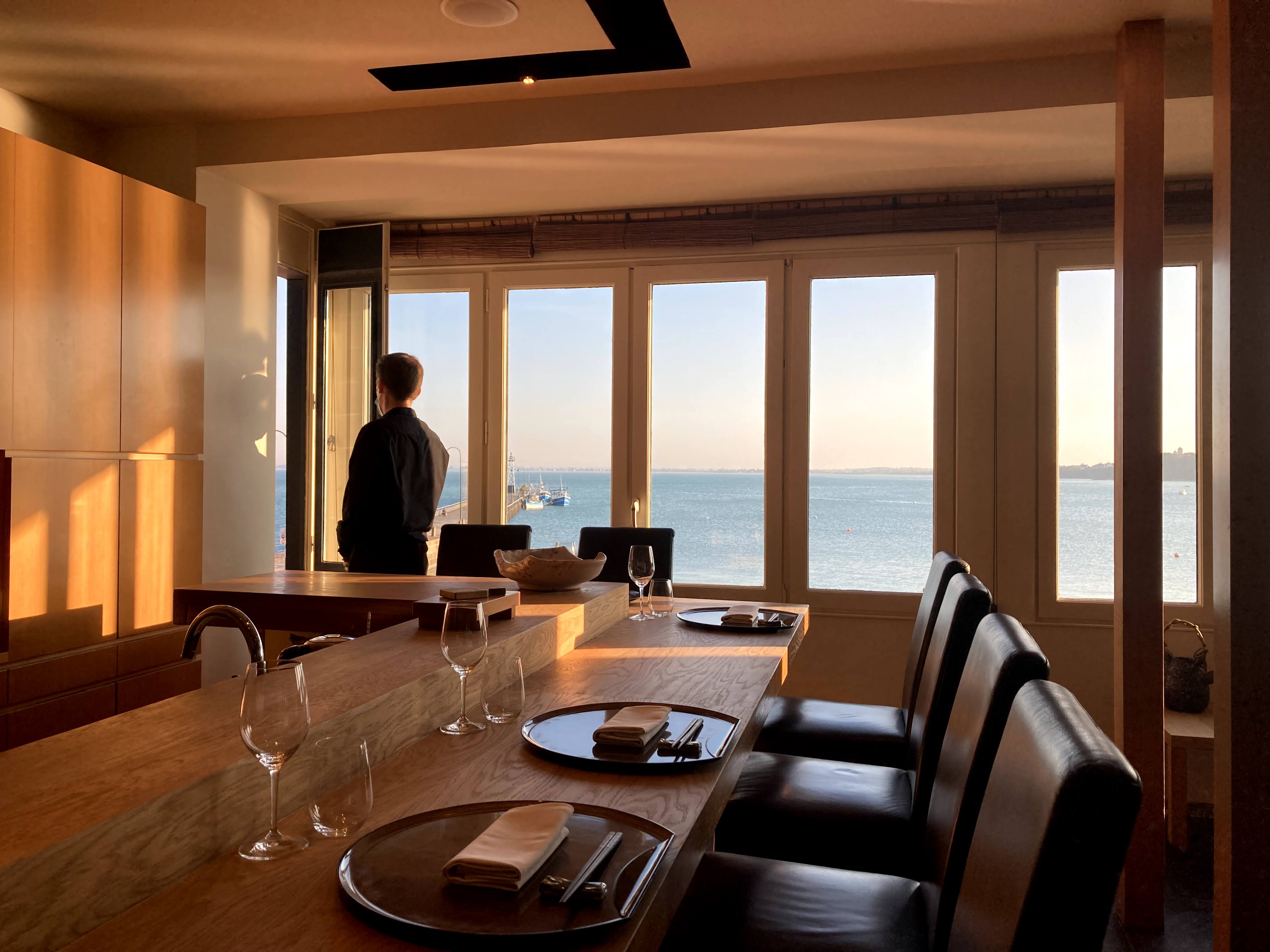 Plongé dès l entrée dans l'univers Japonais du chef, ici tout est sobre, bois blond, calme, un comptoir où nous sommes conviés à nous installer, face au chef qui officie. Les produits de la mer sont sublimés par un savant mélange de produits Japonais, à déguster avec des baguettes. Découvrir également l hotel face mer avec un petit dejeuner de produits sains sur une ambiance grande table. Je recommande