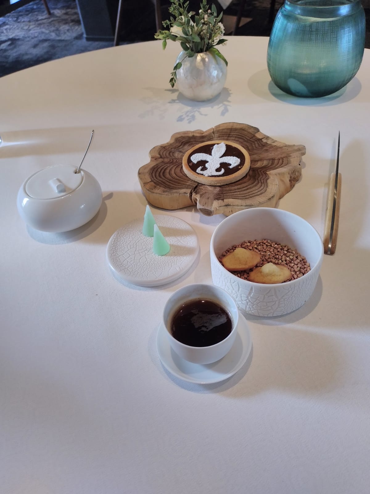 Un véritable délice des amuses bouche au café. Un plaisir des yeux et des papilles tant dans les saveurs que dans les textures. Une décoration raffinée, une cuisine ouverte qui permet d'apprécier le professionnalisme des serveurs remarquablement aimables. Un coup de cœur, le beurre au café sur du pain aux graines de lin !