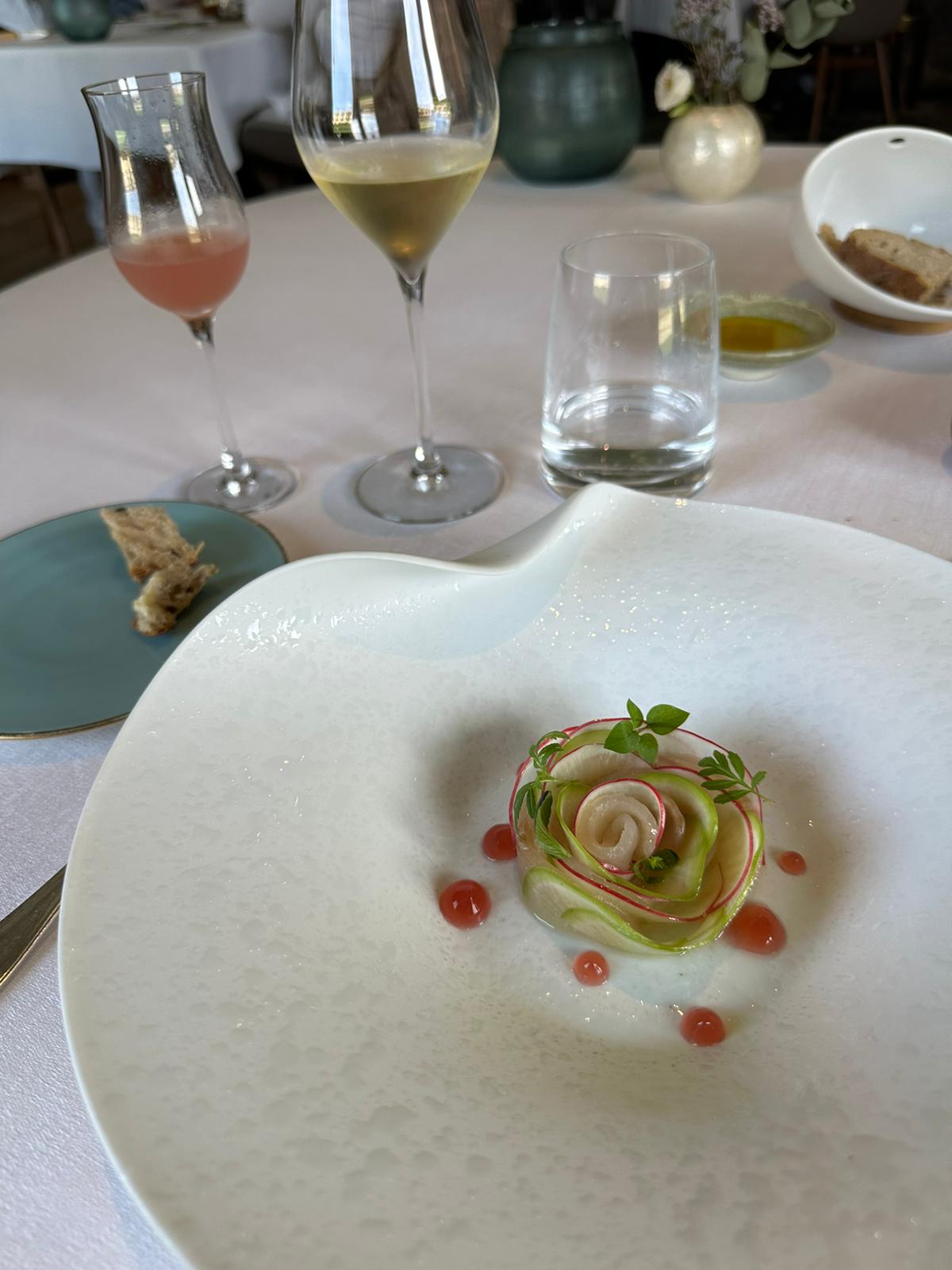 Merveilleux moment partagé avec mon épouse, où la beauté artistique des assiettes, se succédant, le partage aux arômes subtils et à la qualité des produits, le plus souvent issu de producteurs locaux ! Tout ceci géré et animé par la Chef Marie Gricourt et sa brigade au top. Un véritable plaisir humain et gustatif 😉