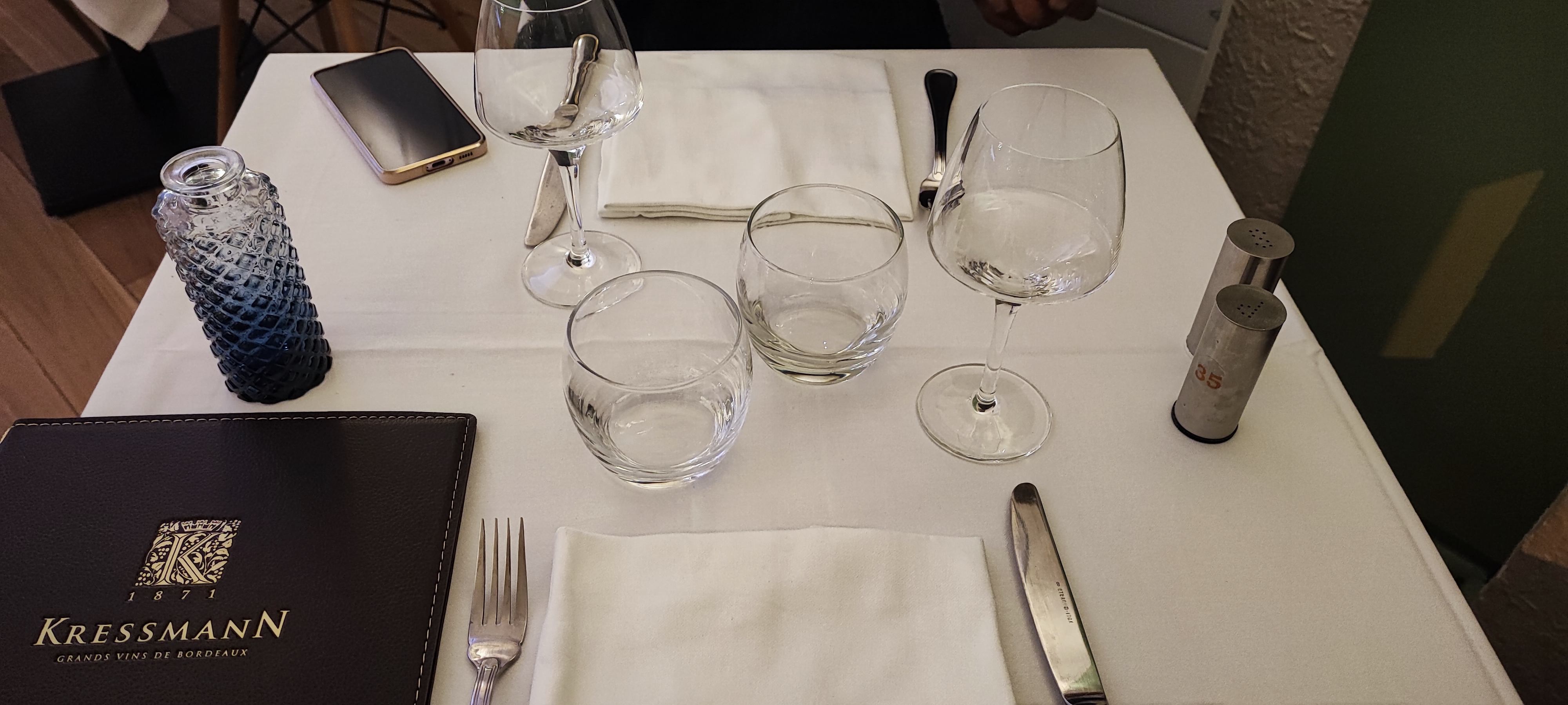 Excellente impression. Foie gras mi-cuit à tomber par terre. Entrecôte de bœuf Limousin parfaite, pas trop grasse, savoureuse parfaitement cuite (ce qui n'est forcément évident). Le retour arrosé d'un lande de Pomerol qui a achevé de séduire nos papilles. Service parfait, cadre agréable et reposant, jolie vaisselle. Une très belle table en centre-ville. Je recommande vivement