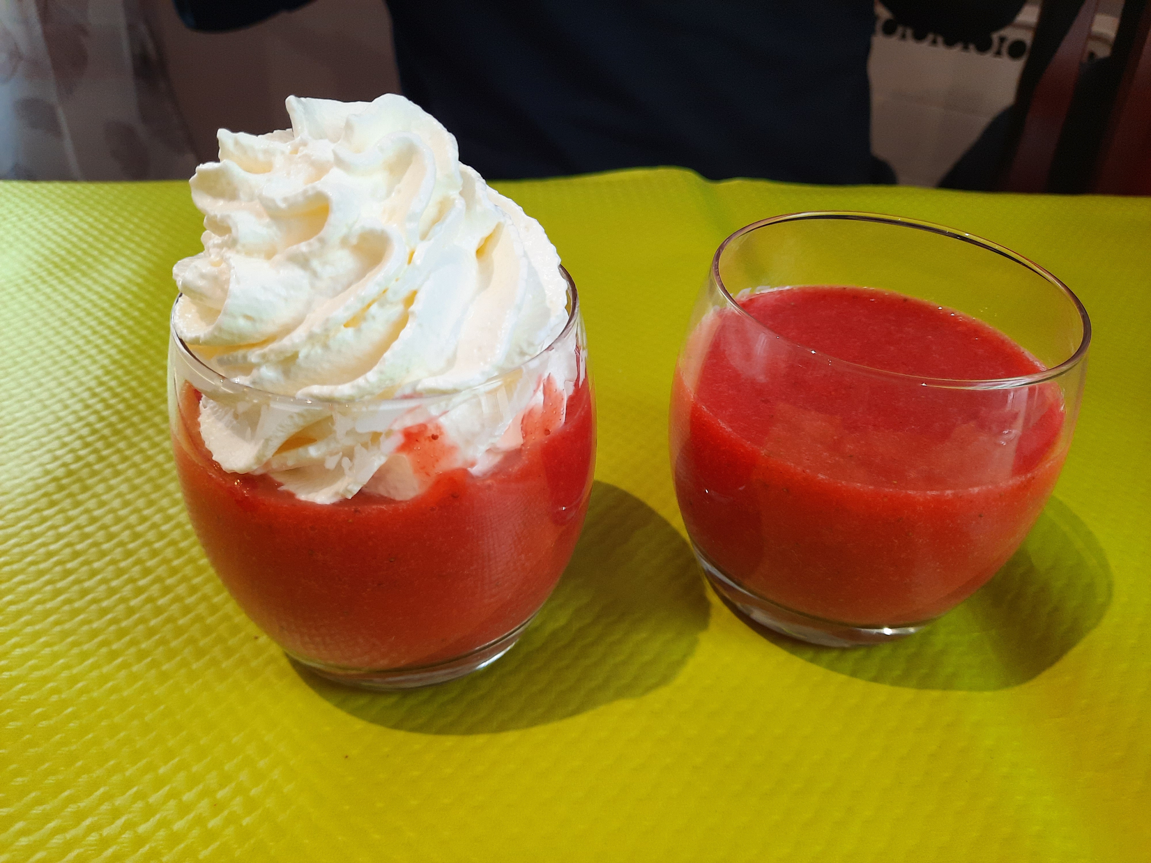 Lieu de déjeuner confortable avec des plats fraîchement préparés. Le poisson avec purée de carottes et la salade au poulet étaient très savoureux. Puis des fraises en purée. Les gens sont très gentils aussi. Nous avons aimé, merci beaucoup !