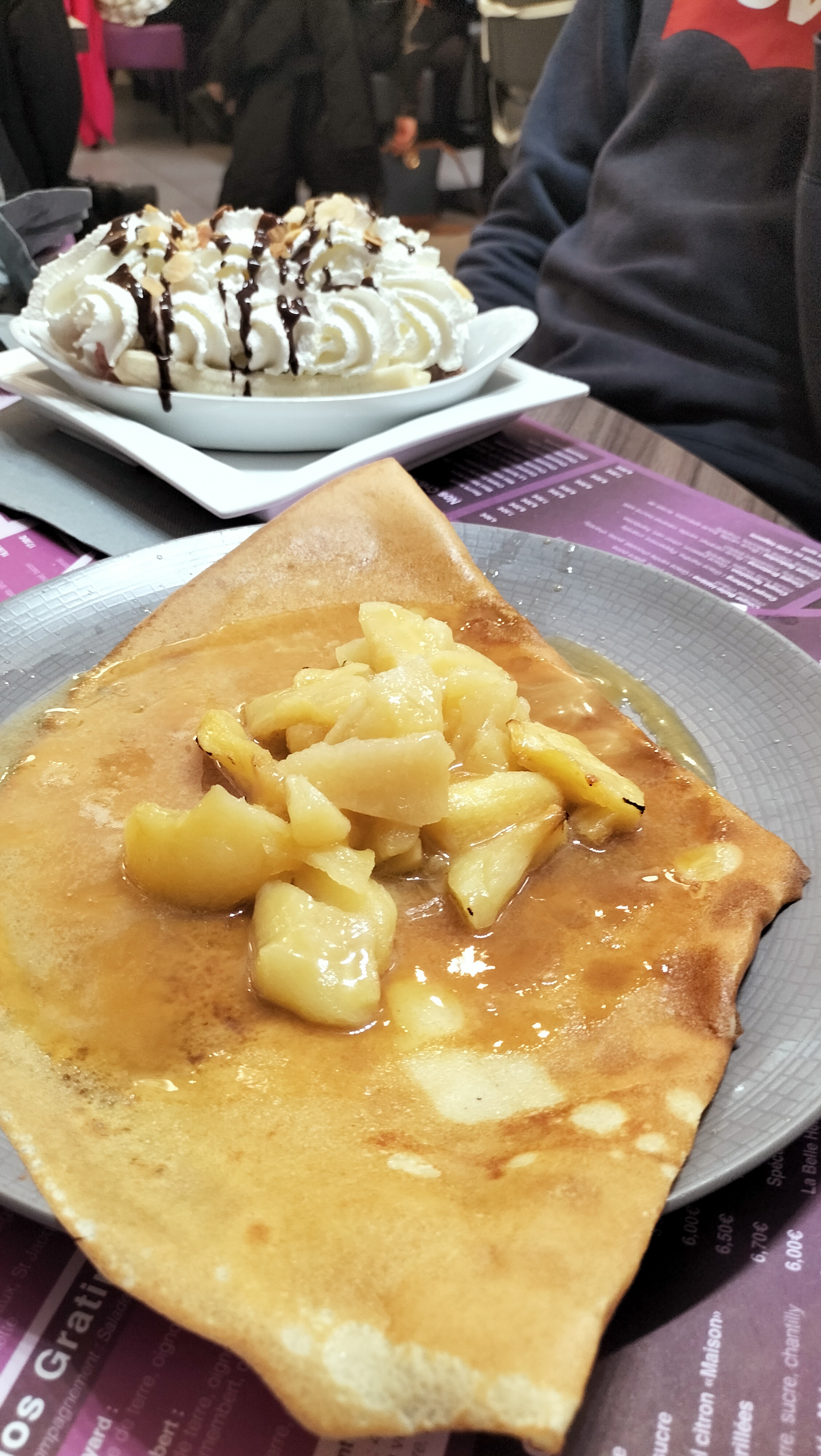 Ne commandez pas une galette morgane, le filet de poulet industriel baigne dans une crème liquide en excès, dommage pour la galette dont le croustillant ne se ressent que sur les bords épargnés par ce tsunami crémeux. Le prix des galettes se situe en moyenne autour de 14€, sauf la complète qui est à 10€. On ne nous a pas proposé l'ardoise en arrivant, nous l'avons découverte au cours du repas.