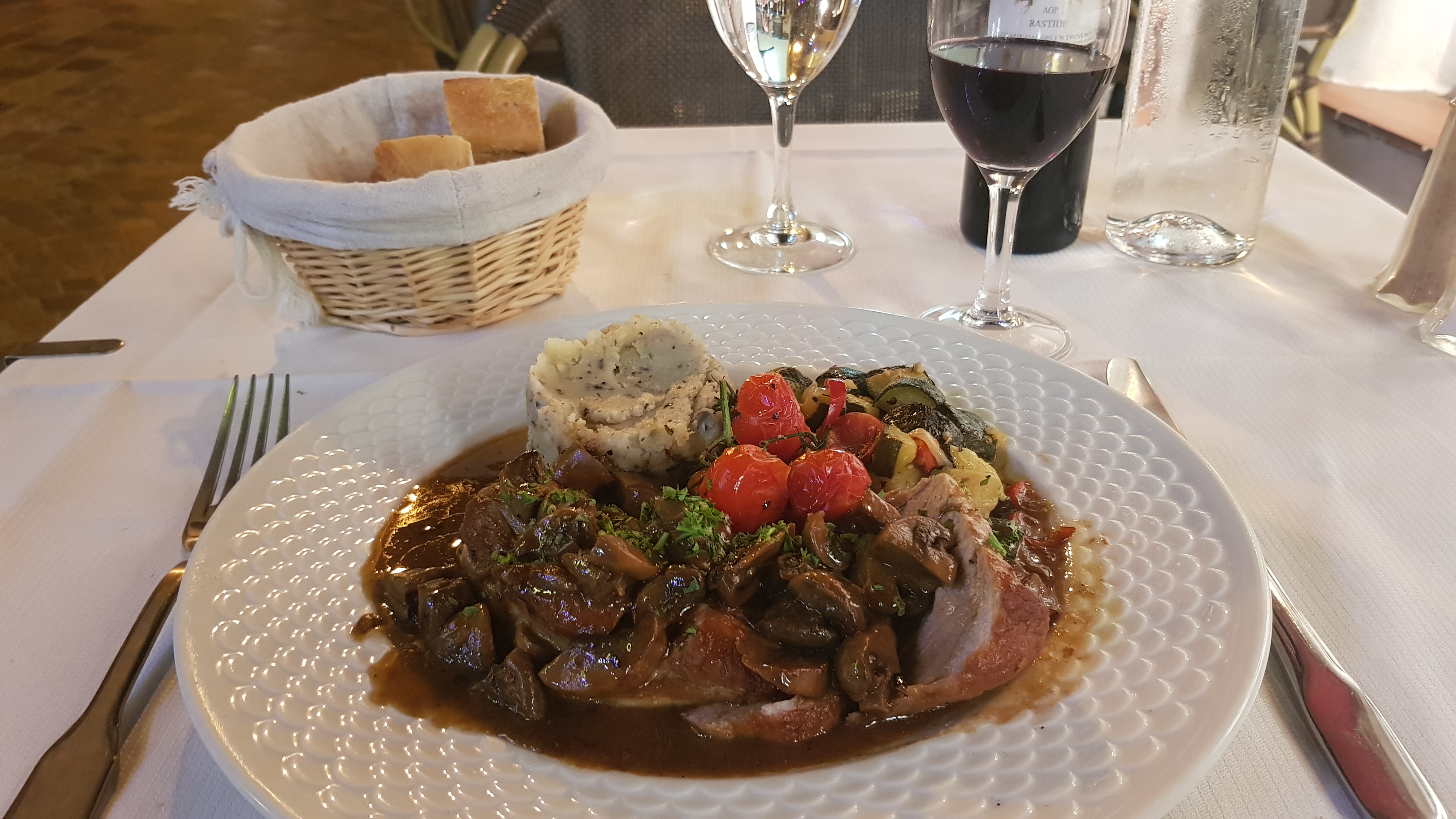 J'ai spontanément décidé d'y manger. Bonne cuisine française. Vraiment un très bon vin. Cela valait le prix. Classe!