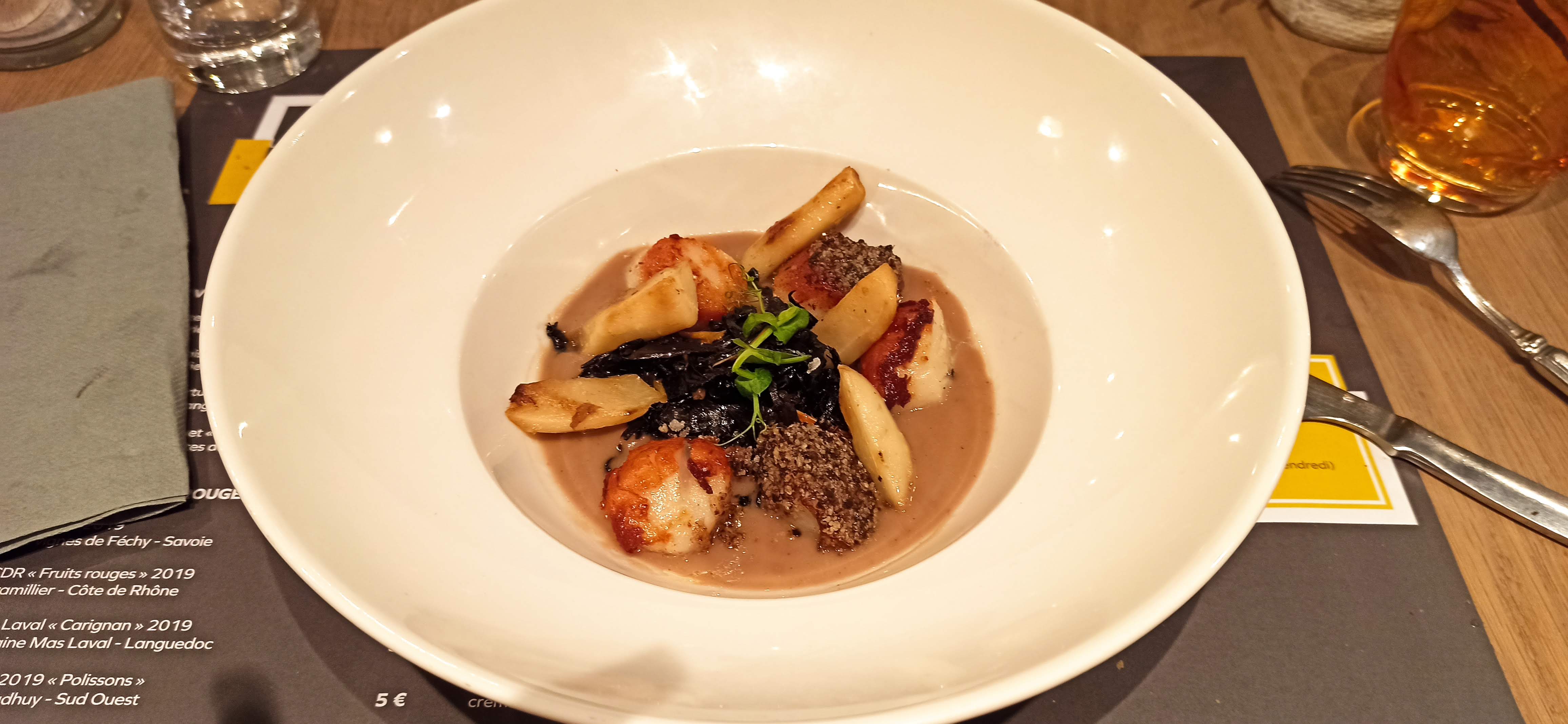 Un mélange des saveurs organise par le chef à comblé mon palais que se soit avec les Coquilles St Jacques, ou sur les vollailles. Bonne Table.