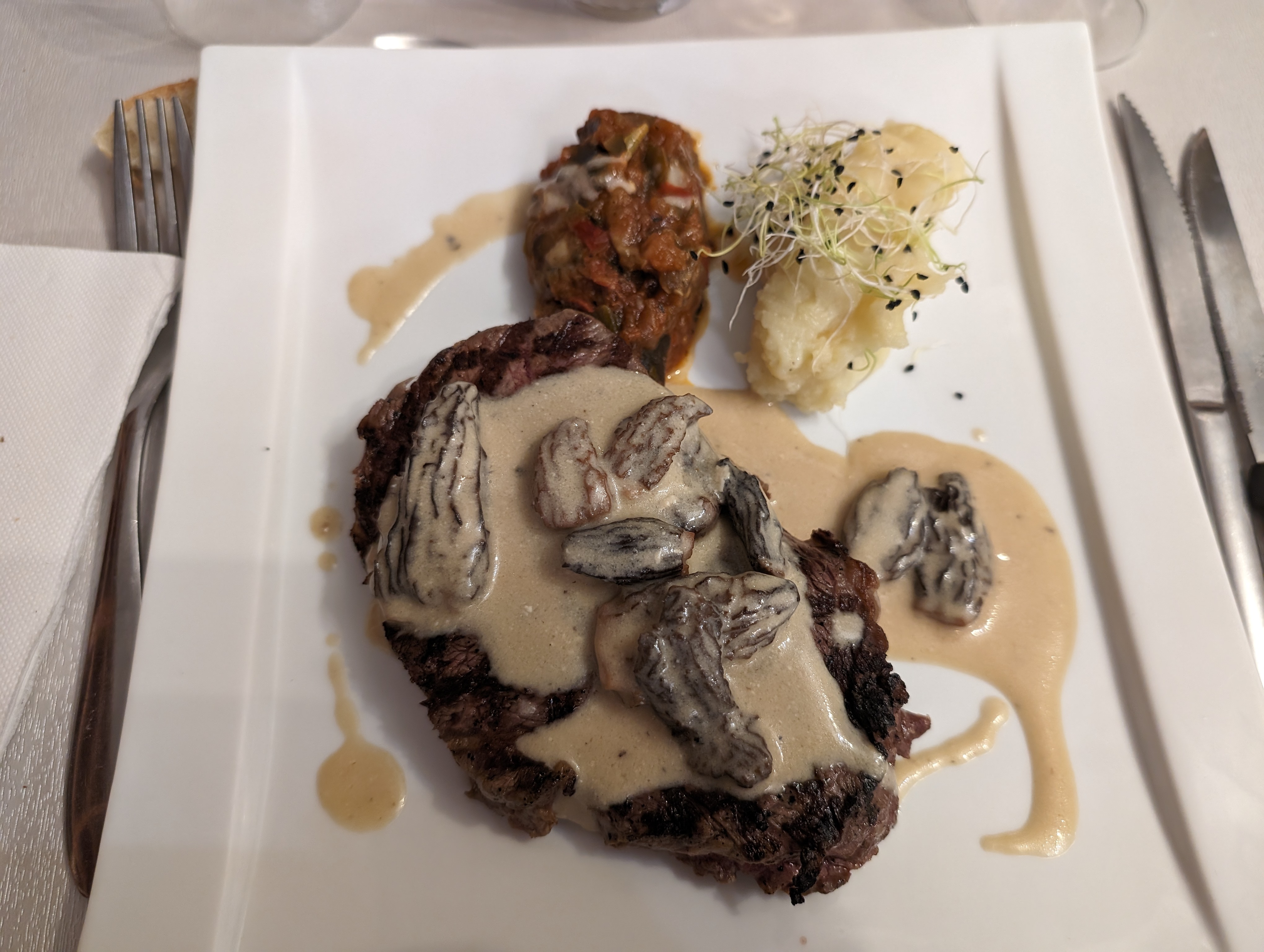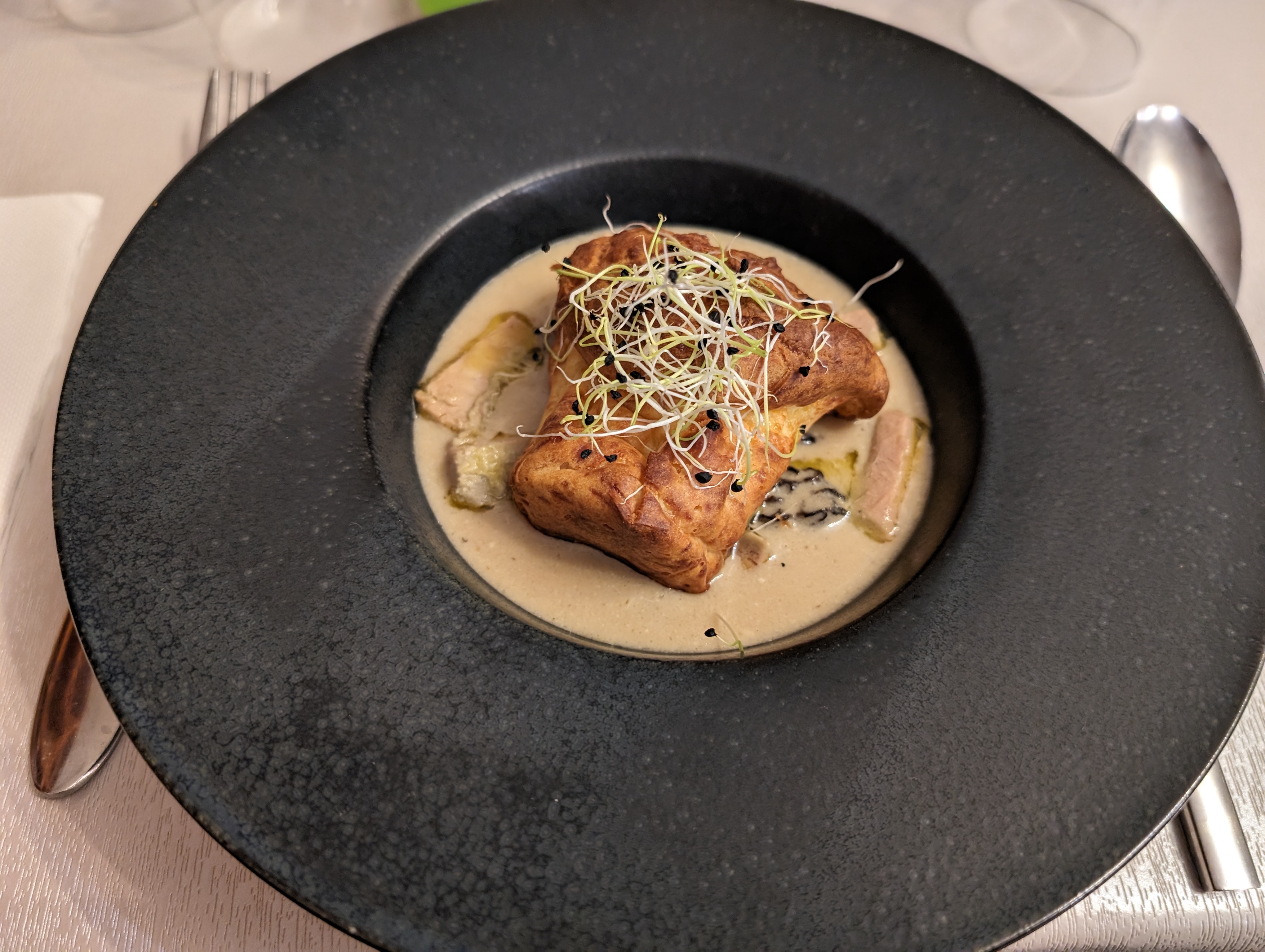 Bonjour, Il y a eu pas mal de maladresses: il a fallu demander des glaçons pour un Ricard, une inversion de commande pour une viande (désolée, depuis le temps je ne me souviens plus de ce que c'était), 1 ou 2 morilles pour un poulet aux morilles, le prix exorbitant de la sauce au poivre en sus, une serveuse est venue reprendre mon assiette (du saumon je crois) pour la redonner à une table derrière moi.. ça fait beaucoup pour un seul dîner et pas de geste commercial suite à l'inversion de commande 🤔. L'accueil reste agréable et souriant.