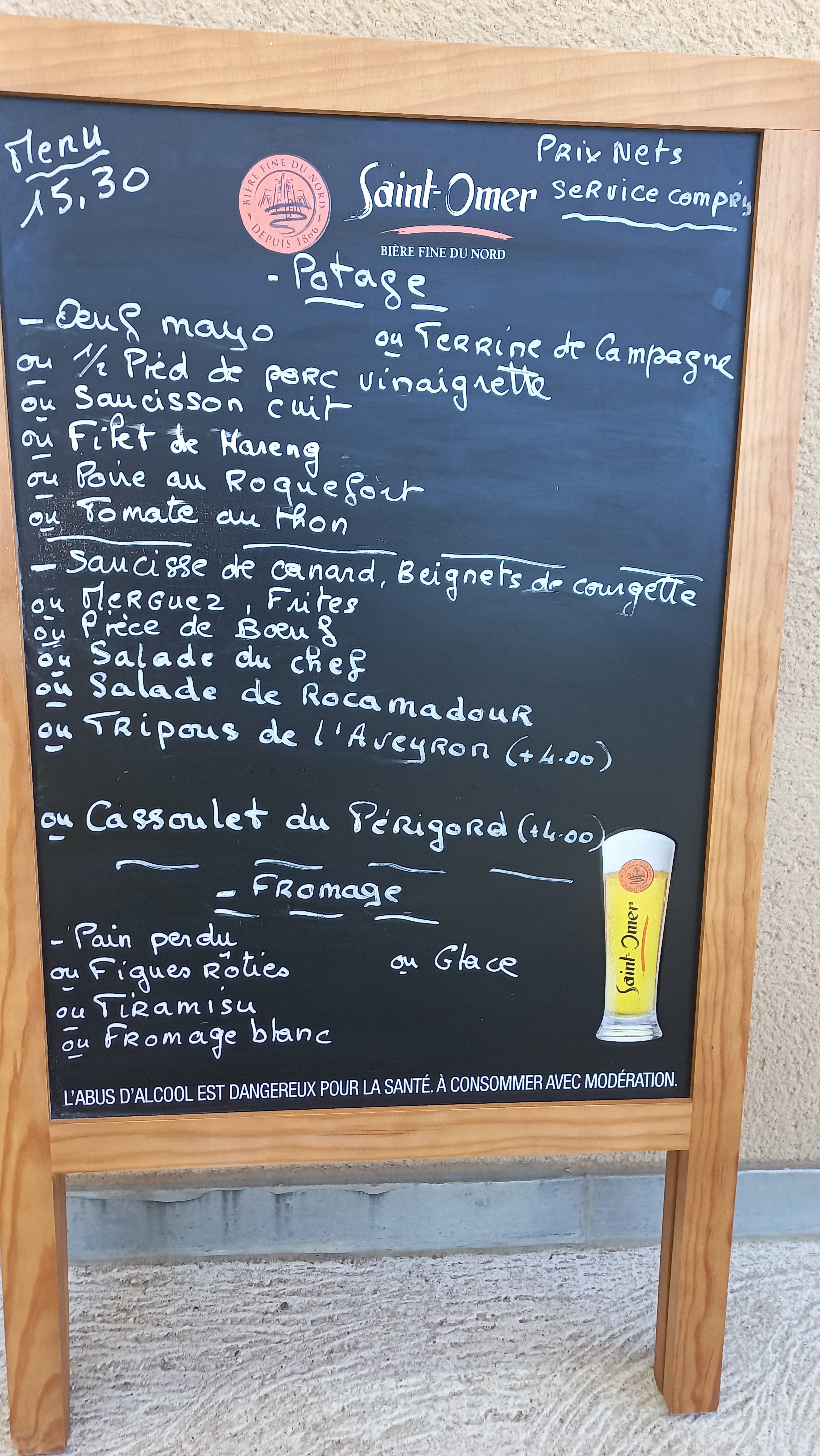 Restaurant local traditionnel, le prix et le menu appartiennent encore au passé, ce qui est incroyable. Nous avons eu 4 plats et du vin et du café pour 20 euros chacun. Chaises hautes pour les enfants. Un parc de jeux derrière également. J'ai eu de la soupe, du camembert rôti, du steak bevette et du fromage avec du vin rouge de Bergerac. C'est une nourriture simple bien préparée avec un bon service. Ma femme et ma mère ont vraiment apprécié le cassoulet et mon père avait un carré de côtes de porc. Si vous voulez une cuisine moderne, allez ailleurs si vous voulez une cuisine qui représente la région, venez ici.
