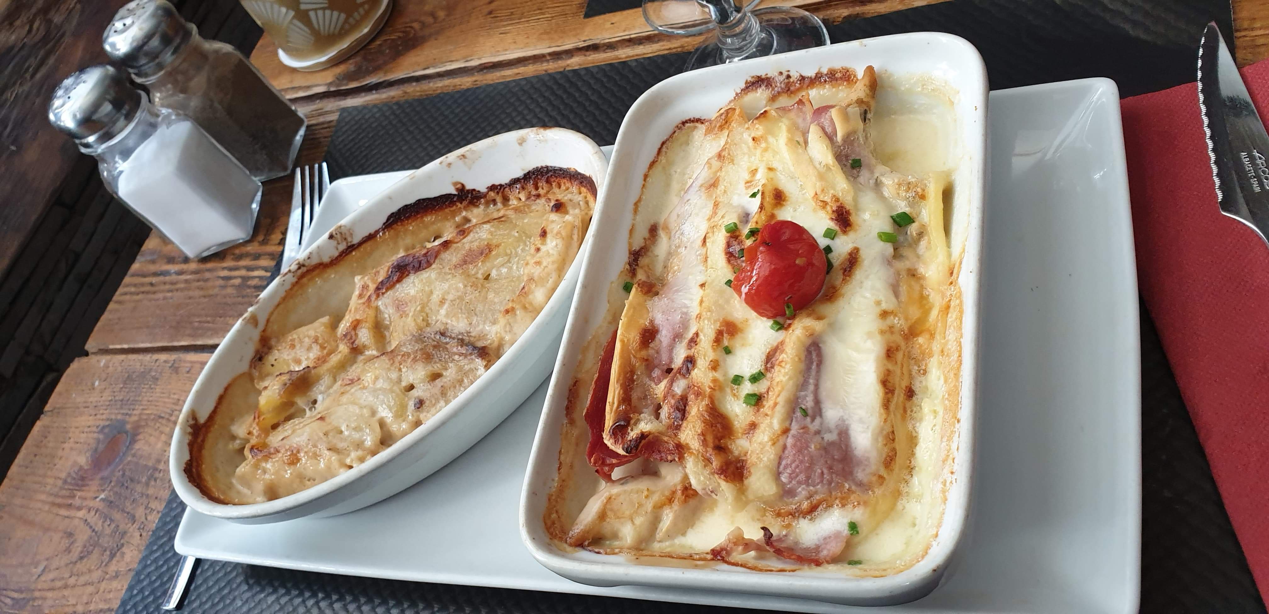 Très belle vue de la terrasse, très satisfait de nos ravioles au gorgonzola et de notre gratin de crozets ! Service impeccable malgré la pression perpétuelle des clients arrivant tout le temps. On nous a un peu oublié vers la fin au moment de payer, cela a été un peu long d'attendre, mais notre serveuse était en permanence sollicitée, donc pas de soucis § Boissons vraiment trop cher en revanche ! On en prend toujours au restaurant, mais 4€ le coca de 33cl, hum, on prendra de l'eau !