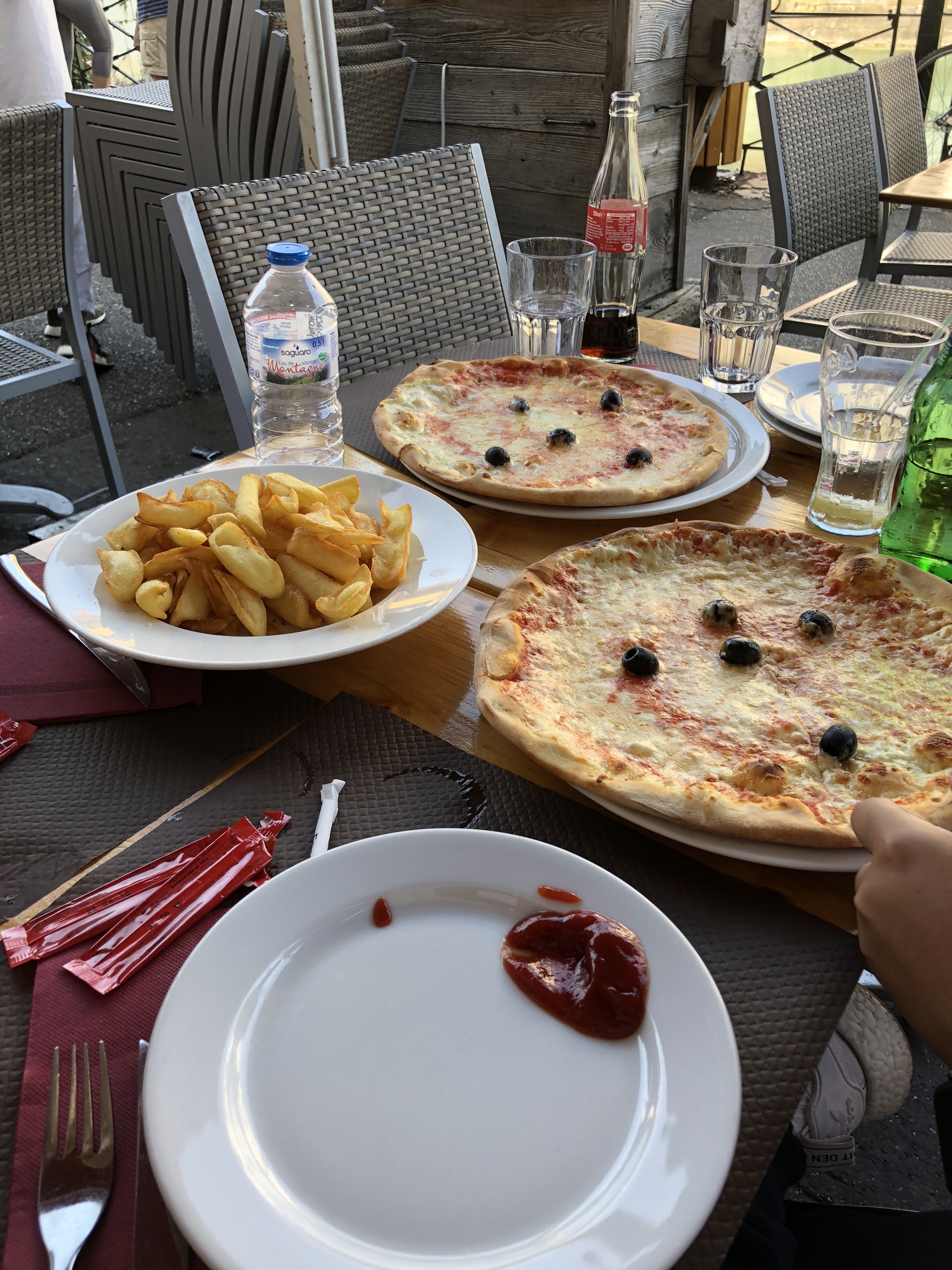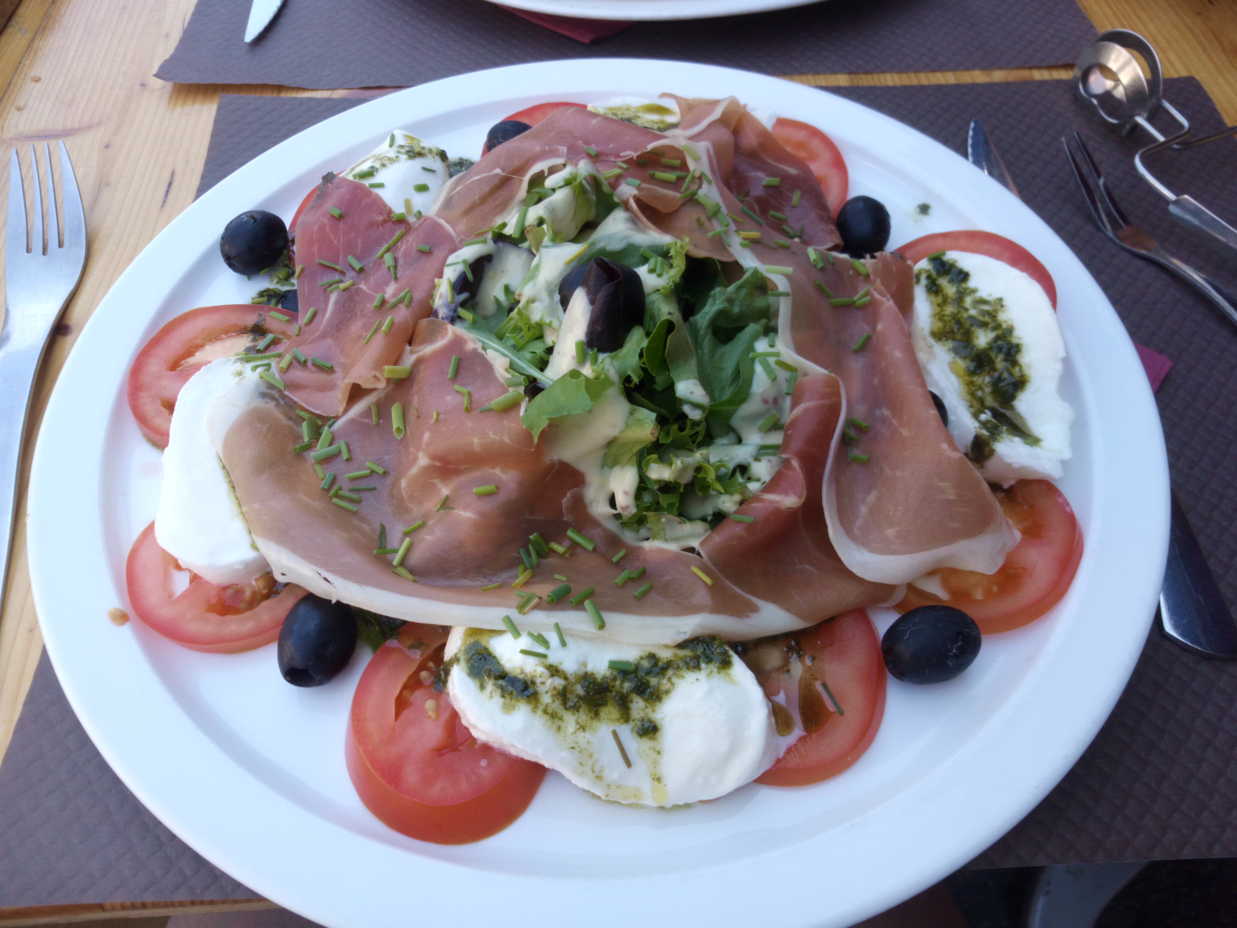 Nous avons pris des salades de chèvre et pizza, rien à dire nous avons bien mangé. Le service est rapide et sans faute. Et en plus service après 15:00, ce qui n est pas le cas partout pour une ville touristique.