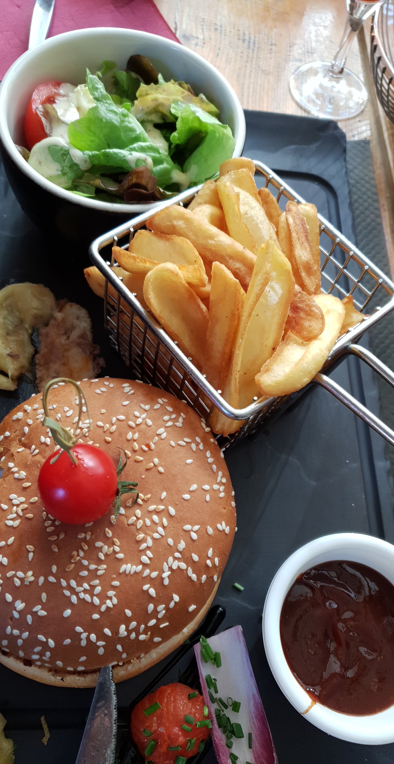 Nous avons commandés 2 salades + assiettes de frites, un vrai régal ! Nous n'avons même pas terminés, tellement c'était copieux, au top du top !!!!