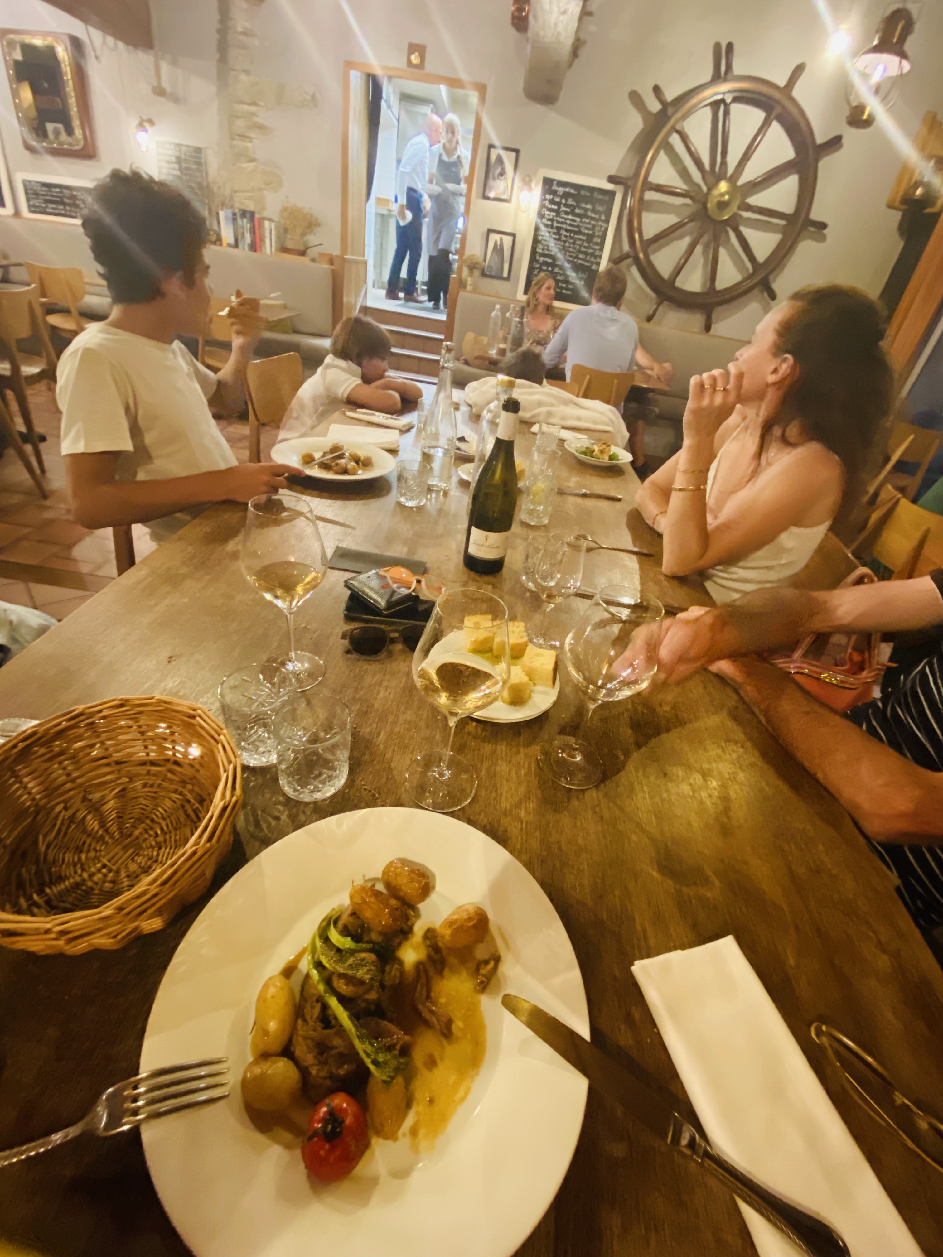 On s’y croit, embarquement imminent avec ambiance marine assurée et une cuisine d’excellence, faussement simple car voisine du grand étoilé situé juste à côté mais ne nous ayant vraiment pas fait regretter d’être venu, d’ailleurs.., nous y reviendrons, merci Elise!
