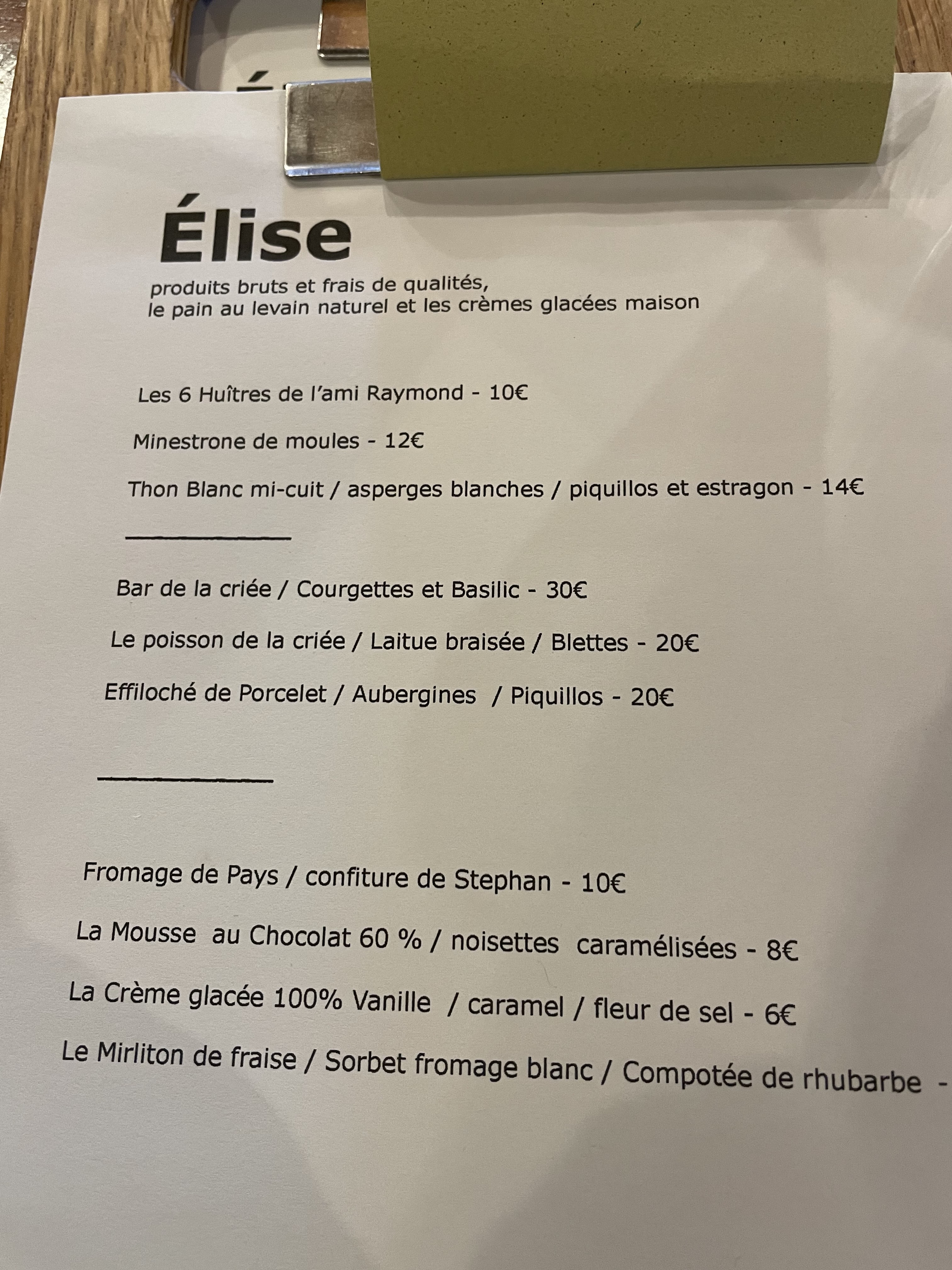 Une petite carte riche en saveurs, repas très savoureux du pain au dessert en passant par le plat.