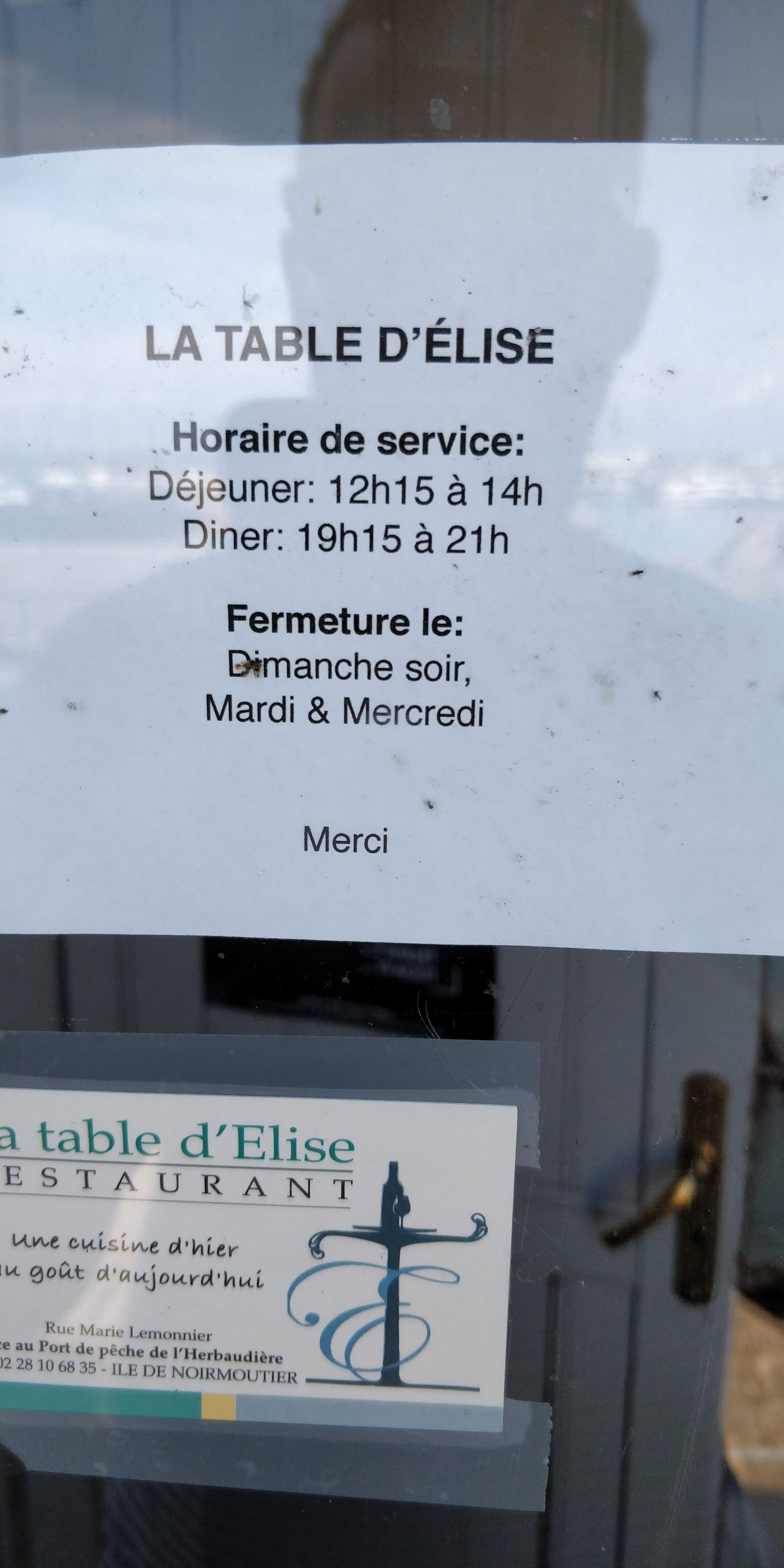 Une bonne table bistronomique sur le port de l'Herbaudière supervisée par le chef étoilé Alexandre Couillon du restaurant de la Marine. Un menu établi à partir des produits des producteurs régionaux. Une cuisine fine et raffinée servie avec un très bon pain maison. Un service professionnel malgré le manque de personnel au service et en cuisine. A choisir dans un menu carte dans une fourchette de prix entre 40 et 45 € avec entrée plat dessert vous est proposé. Le cocktail est sympa à base de framboises et de pétillant vendéen est à essayer. A l'apperitif on vous offre de la fougasse à tremper dans une huile d'olive des Baux de Provence d'excellente qualité. Les plats servis sont bien maîtrisés et bien présentés. Si vous aimez le poisson vous pouvez choisir par exemple à l'entrée les lames de mulet algues et navet croquant et en plat le merlu grillé petits pois frais et radis glaçon c'est plats sont bien maîtrisés. Vous pouvez rajouter pour goûter les fromages vendéens chèvre et vache qui sont à découvrir. Pour votre repas vous pouvez goûter des vins vendéens. Nous avons passé un bon moment et apprécié la cuisine à la Table d'Elise. Un petit conseil il vaut mieux réserver à l'avance si vous voulez avoir une table il y a beaucoup de demandes.