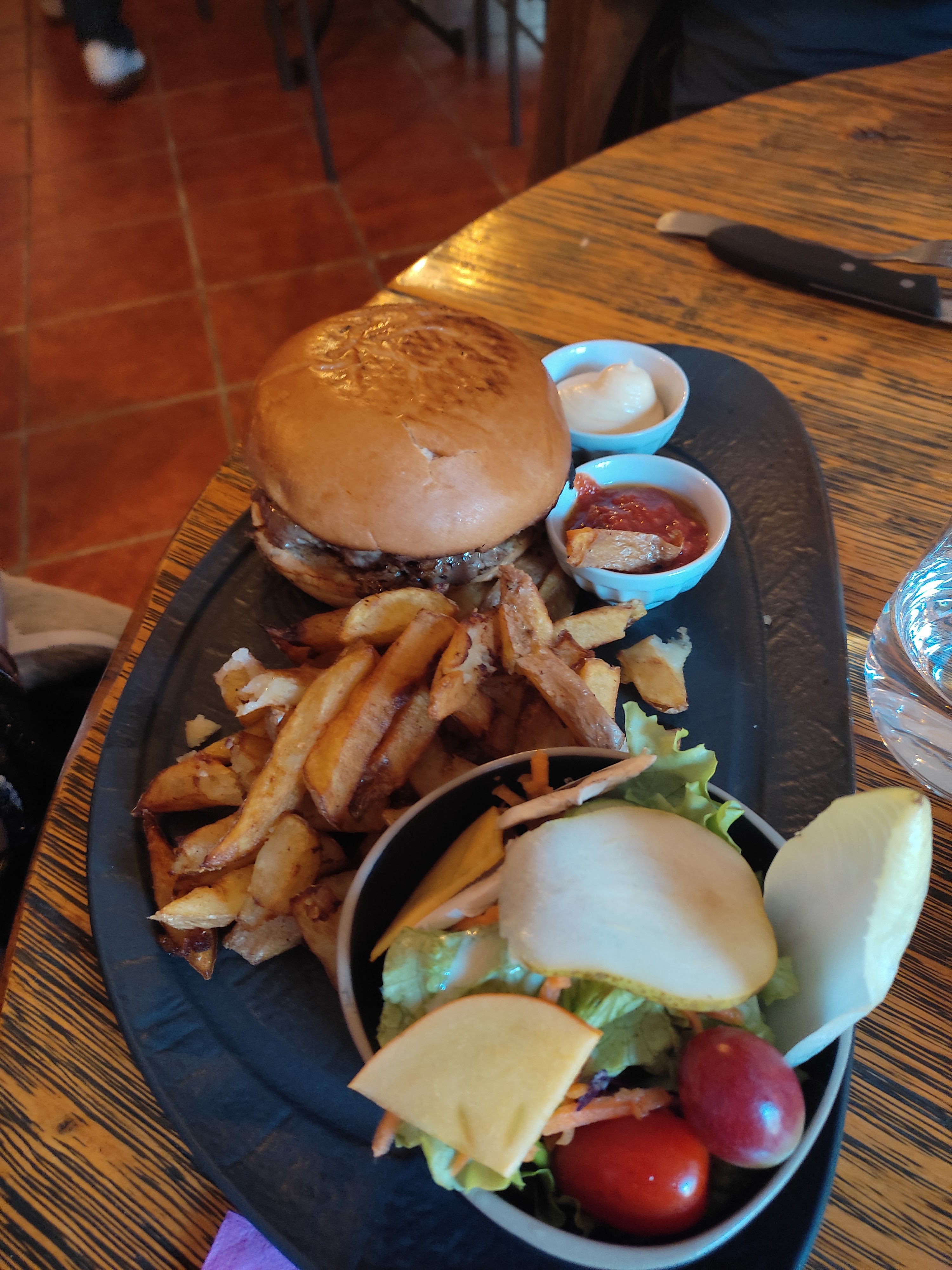 Très belle découverte. Service au top. Un foie gras en entrée un vrai délice. La viande de très bonne qualité et super tendre. Le burger 600 GMS que mon fils a mangé mérite un 5 étoiles la bruchetta saumon pareil au top. Y aller sans détour. C'était un vrai plaisir.