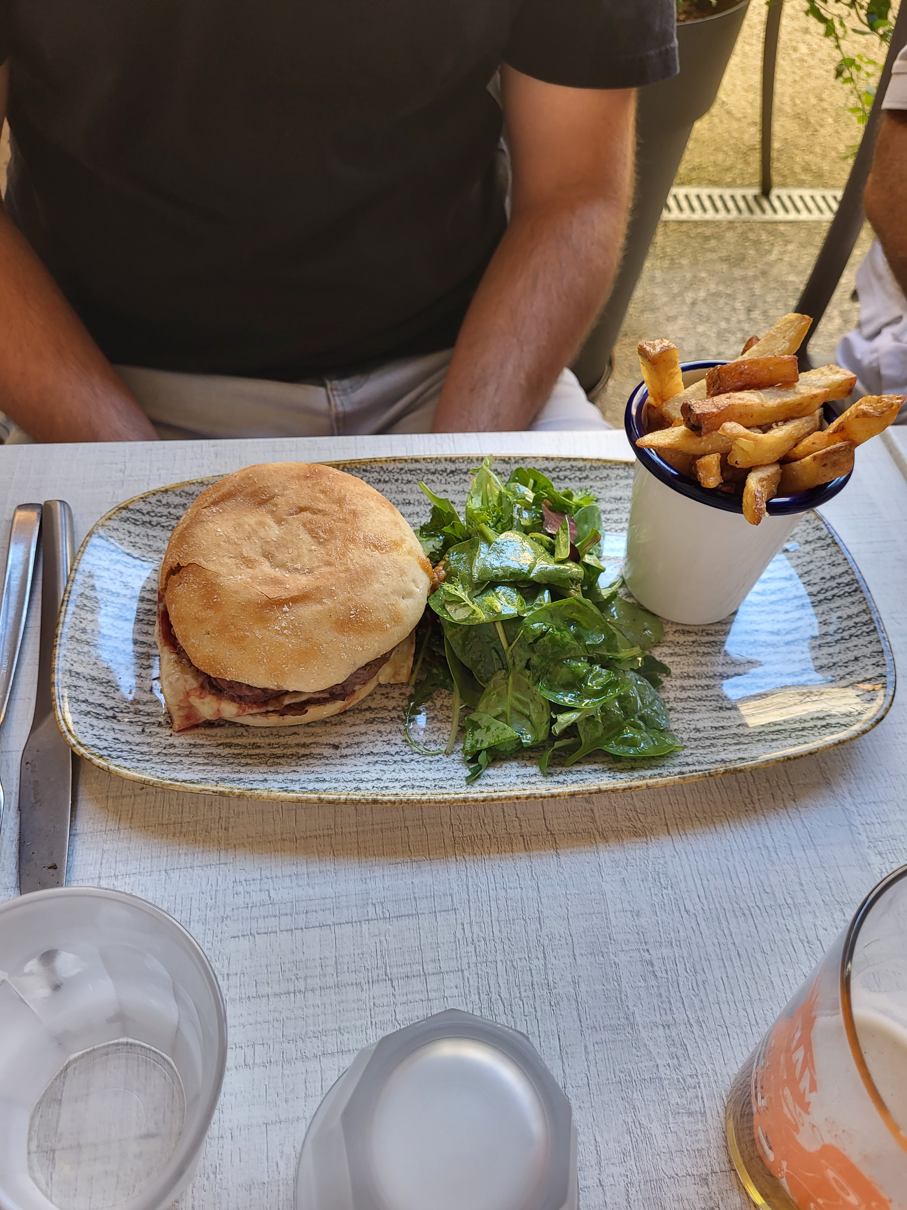 Nous avons mangé par un dimanche de septembre, malgré le fait que ça soit complet on nous a proposer de manger sur les petites tables de dehors. Personnel très sympathique. Ensuite burger de canard (l’un des meilleurs que j’ai mangé. Juste parfait) et un tournedos Rossini extra 🤩