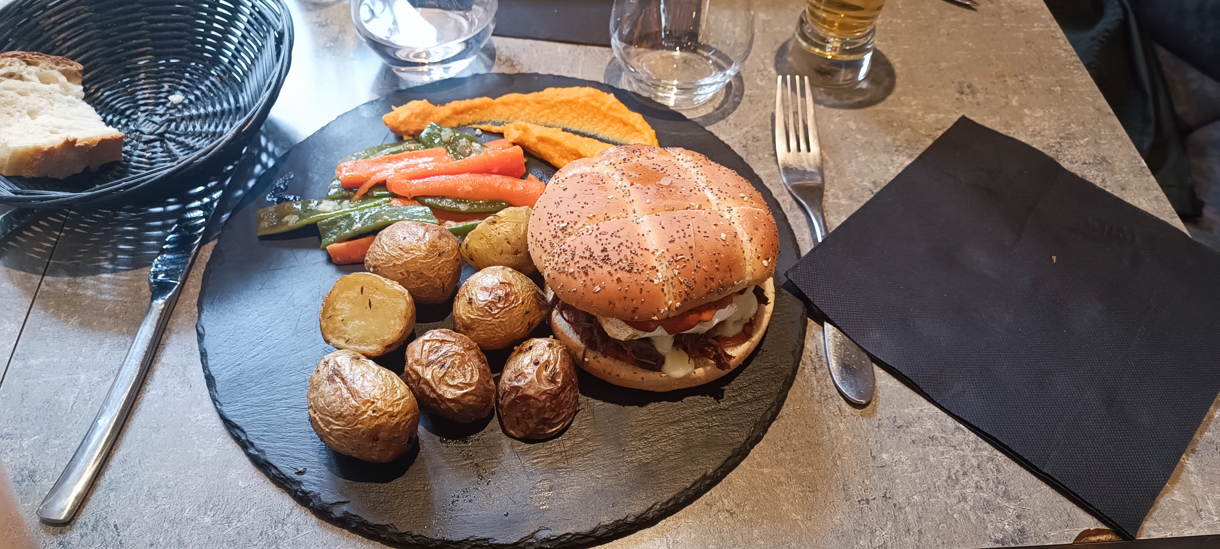Une cuisine simple mais réfléchie, avec des produits de saison. Effiloché de viande pour le burger, profiteroles au gorgonzola.. Prix abordables !