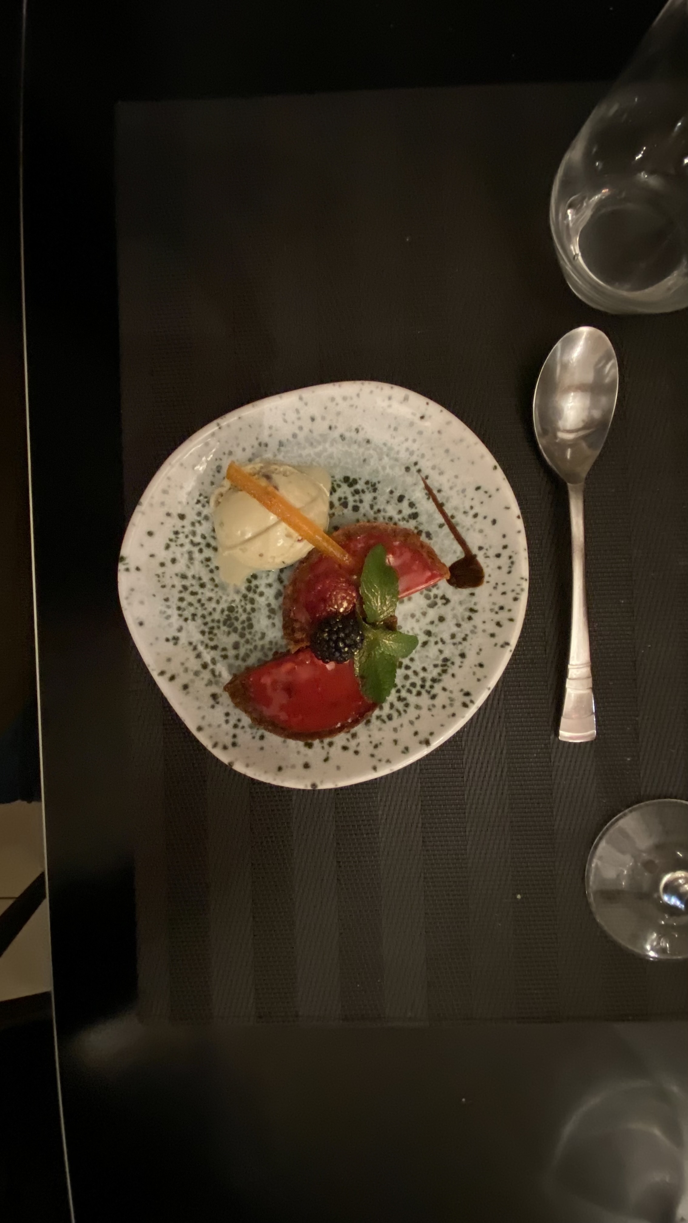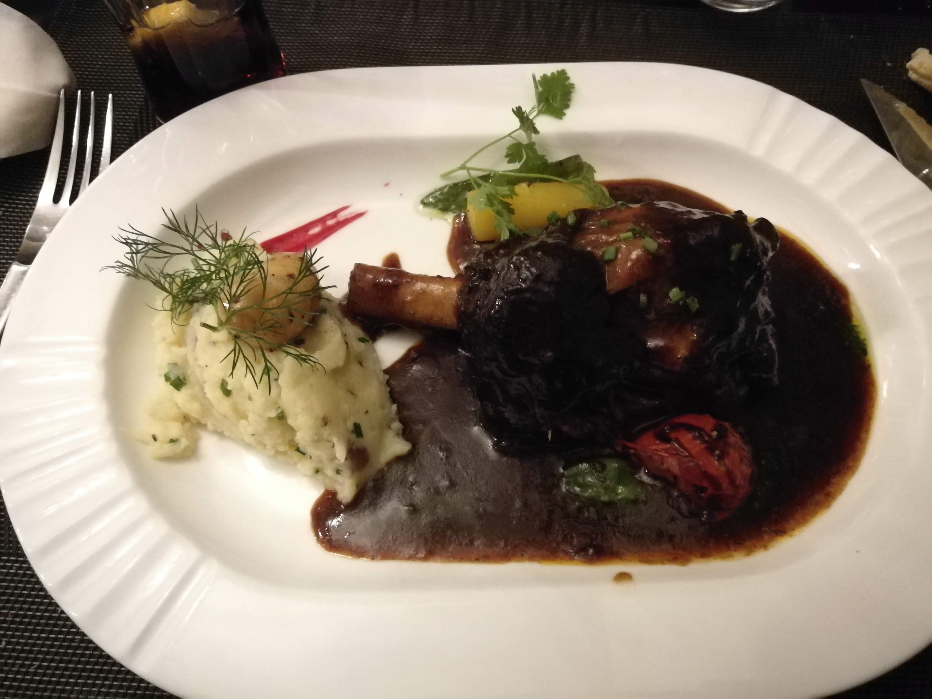 Tout était parfait du début à la fin! Nous étions partis sur un repas complet (entrée, plat, dessert) mais nous n'avons pas pu arriver au dessert vu les généreuses quantités servies. Service impeccable, cuisine goûteuse (souris d'agneau excellente), allez y les yeux fermés !