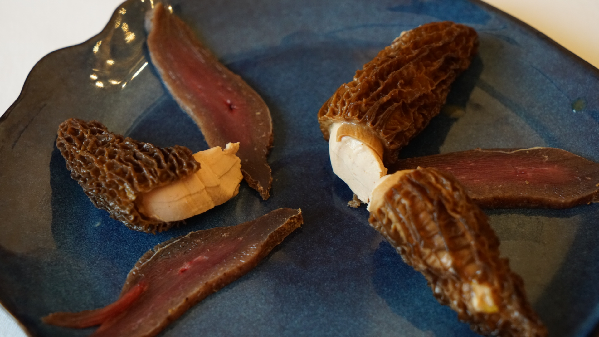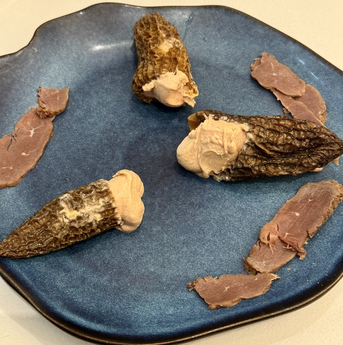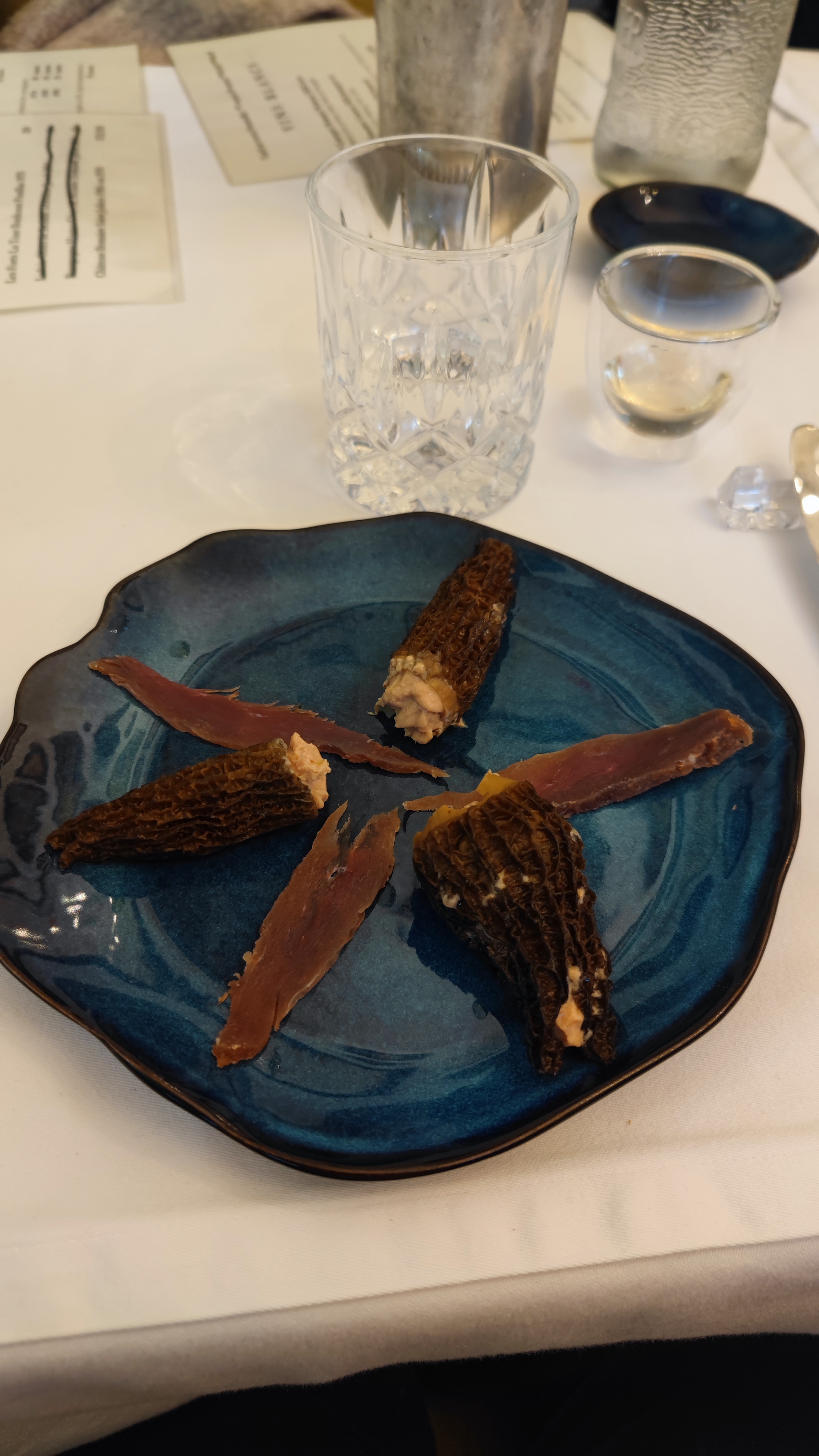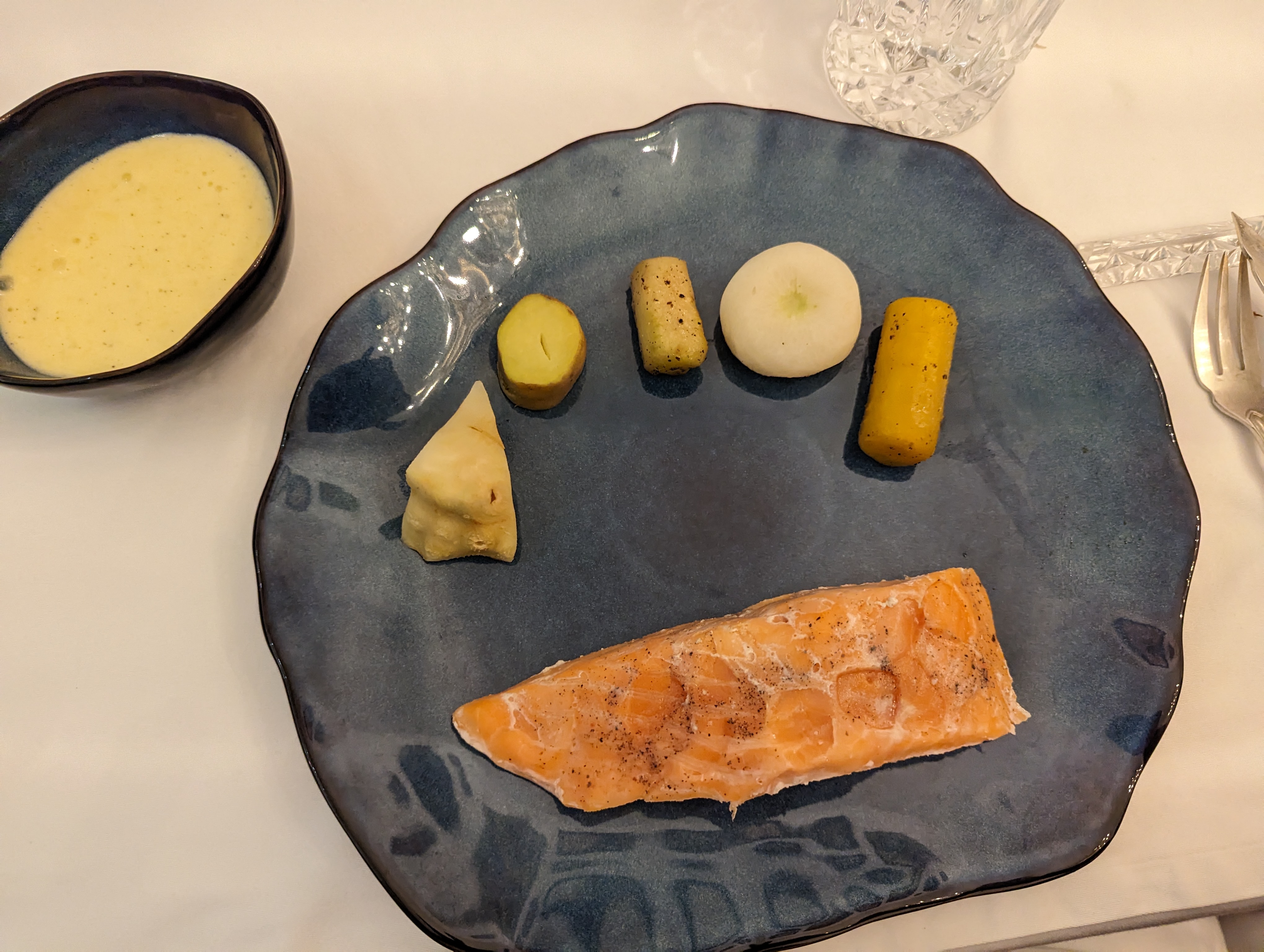 Une 4eme visite toujours aussi agréable et fastueuse ! Alexandre ne sait pas limiter la générosité de ses plats, et comme la qualité est excellente, c'est véritable festin ! Cette fois, j'ai repris de son sublime foie gras maison au safran (c'est un must), des morilles fourrées au foie gras (oui j'aime ça) accompagnées de magrets de canard séchés, un pavé de saumon à l'encre de seiche cuit en basse température (une découverte, tellement fondant !), et le tout accompagné d'un très bon vin du Jura.