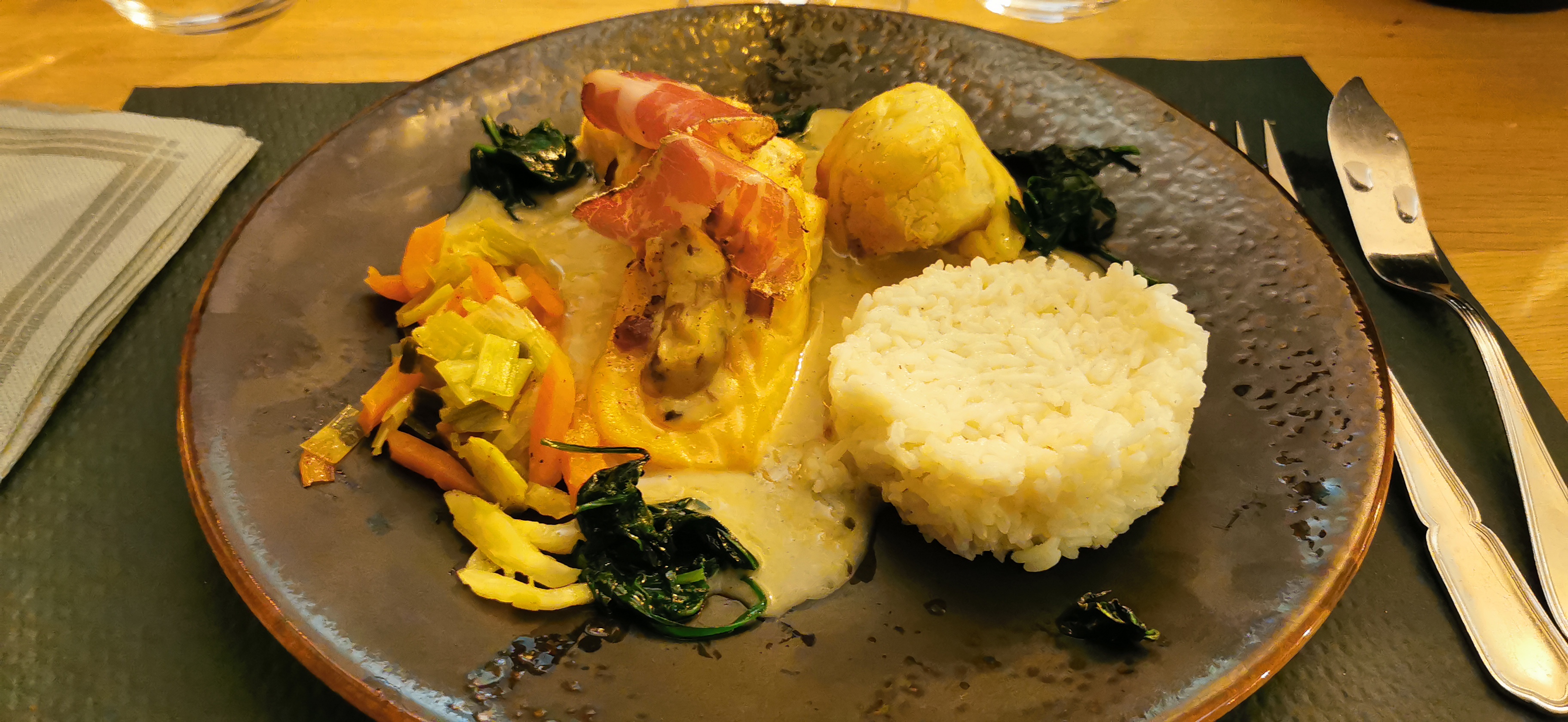 Très bon et copieux, un très beau restaurant. Nous y reviendrons...