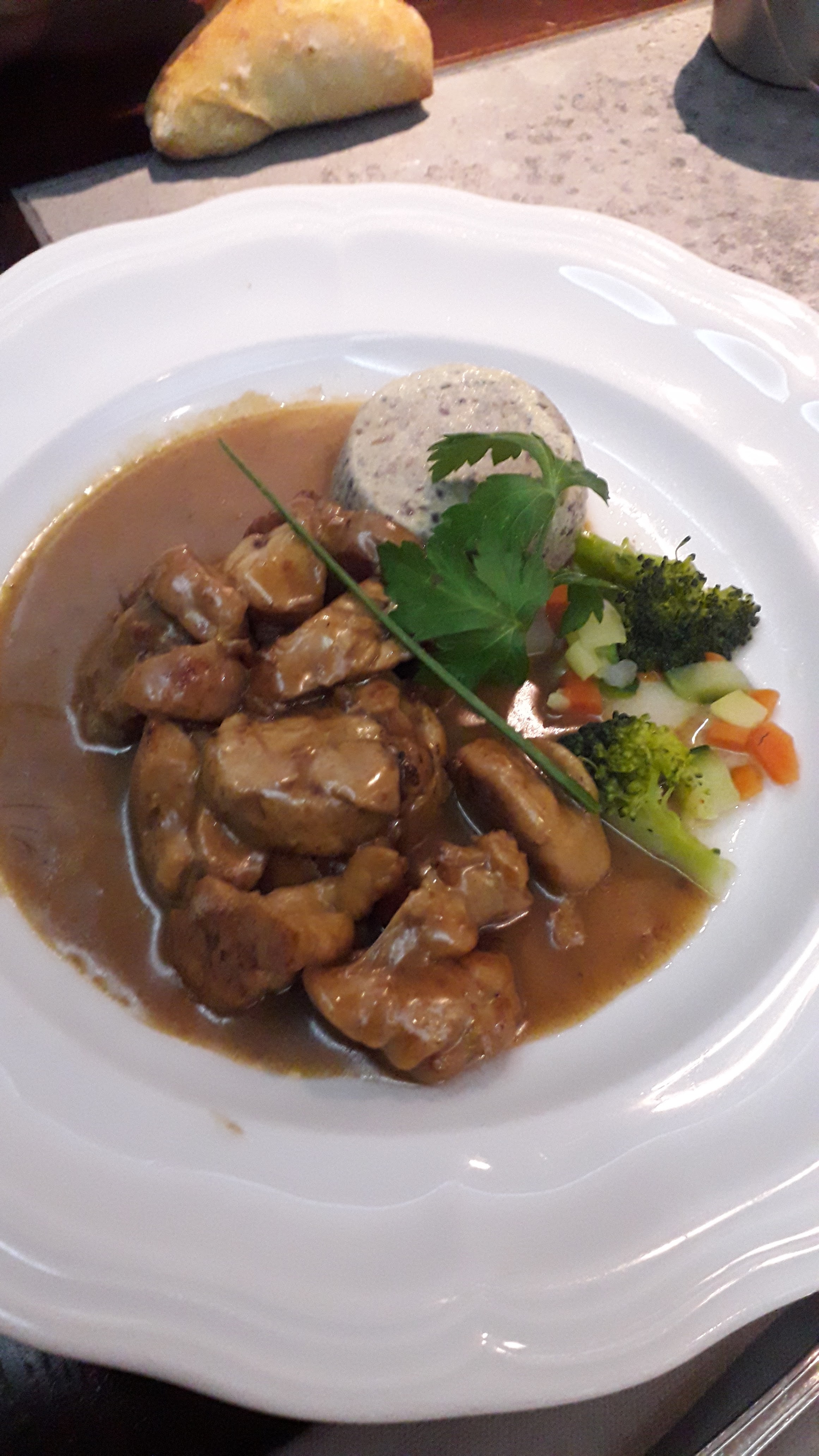 Nous avions vu de très bons avis et bien nous avons étés déçu , mon mari a commandé de la blanquette de veau et il y avait très peu de viande (4petits morceaux ), donc pas assez copieux, 18euros ,un peu cher pour ça, moi j ai commandé un poulet aux écrevisses, le poulet ok la sauce n avait pas de goût, servit avec des pâtes qui avaient elles non plus aucun goût car servit nature, prix 17 ou 18 euros....dommage.... Dessert cake imbibé ok mon mari a bien aimé Plateau de fromage 8euros, pour moi , très bon fromages , et environ 6 sortes. Je dois toutefois dire que l accueil était parfait, serveuses aussi.