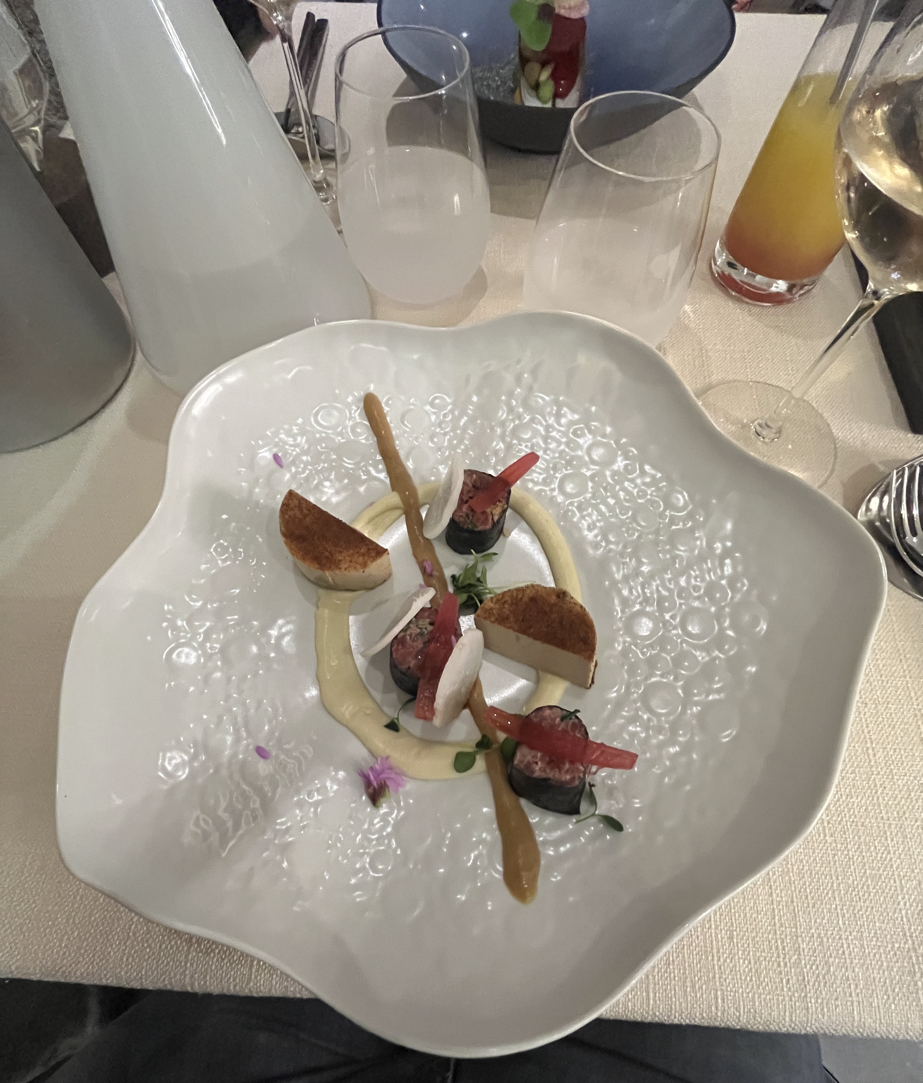 Très très déçus : un amuse bouche à base de betterave rouge très acide, un foie gras farineux recouvert d'une purée à la betterave rouge et baignant dans un sorbet à l'hibiscus totalement incongru, des desserts indignes d'un restaurant étoilé. Seul le plat de lotte avec sa purée était excellent mais avec un supplément. En conclusion, un très mauvais rapport qualité prix et pour nous, pas digne d'être étoilé.