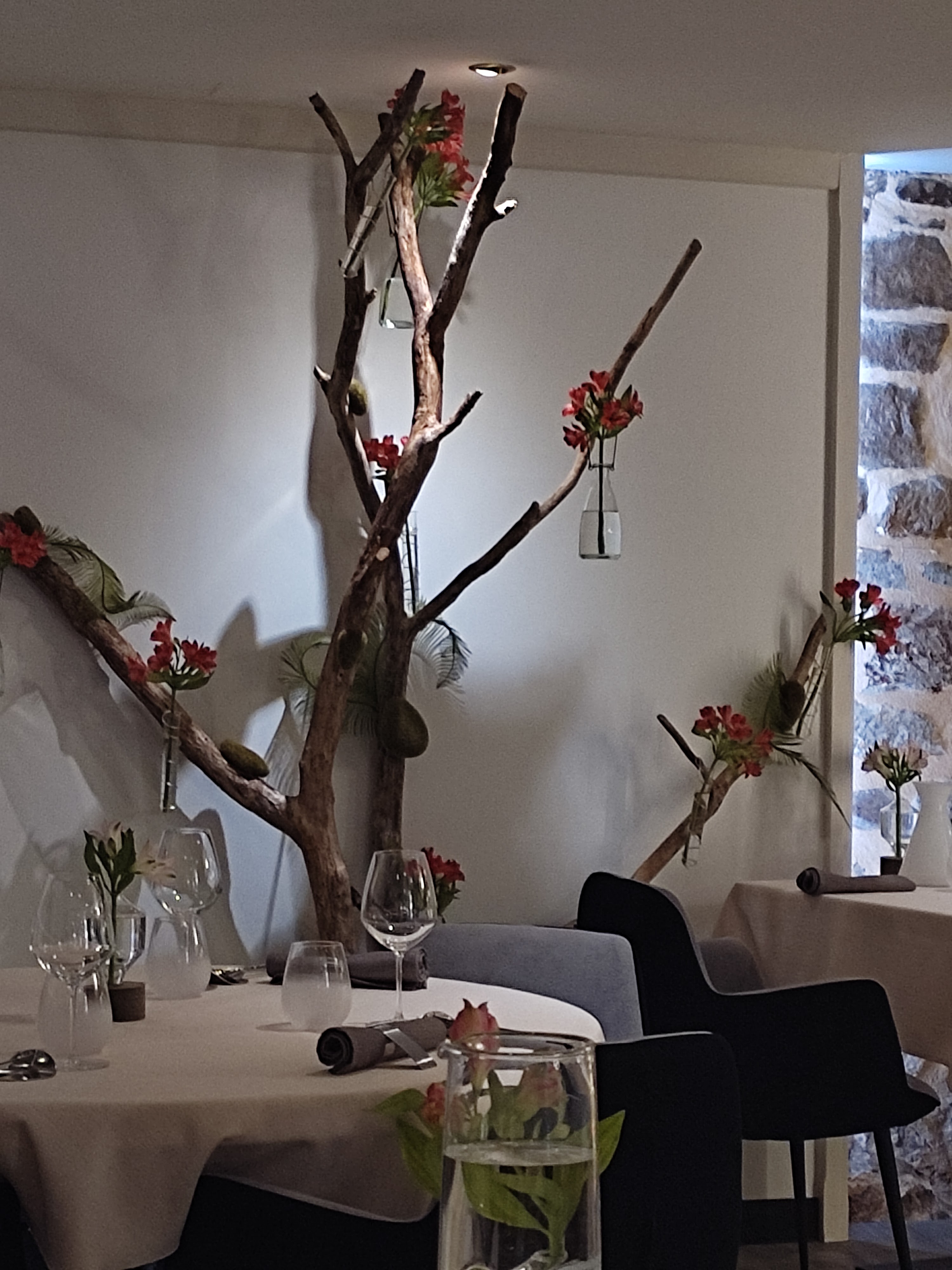 Superbe expérience culinaire, pleines de surprises, plaisir des yeux sur des compositions culinaires subtiles en couleurs et la première bouchée est une explosion de saveurs! Jouissif ! Juste une petite note de déco Radis un peu répétitif… le service est très agréable, la salle est belle avec le mur de pierre, j’ai juste eu du mal avec les singes qui nous observent avec un regard provoquant qui dénote avec la délicatesse des mets … ils m’ont gâché mon plaisir 😅🐵🙈la prochaine fois je leurs tournerai le dos car ils vont pas m empêcher tout de même de revenir ! 😉 félicitations chef !